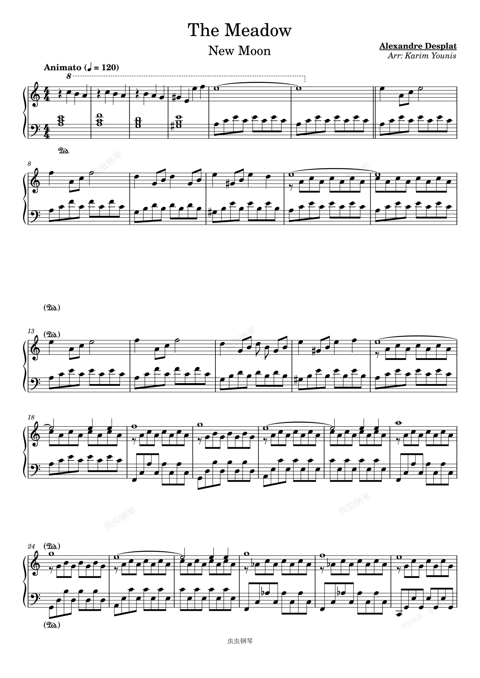 钢琴谱:暮光之城:新月 电影 The Meadow