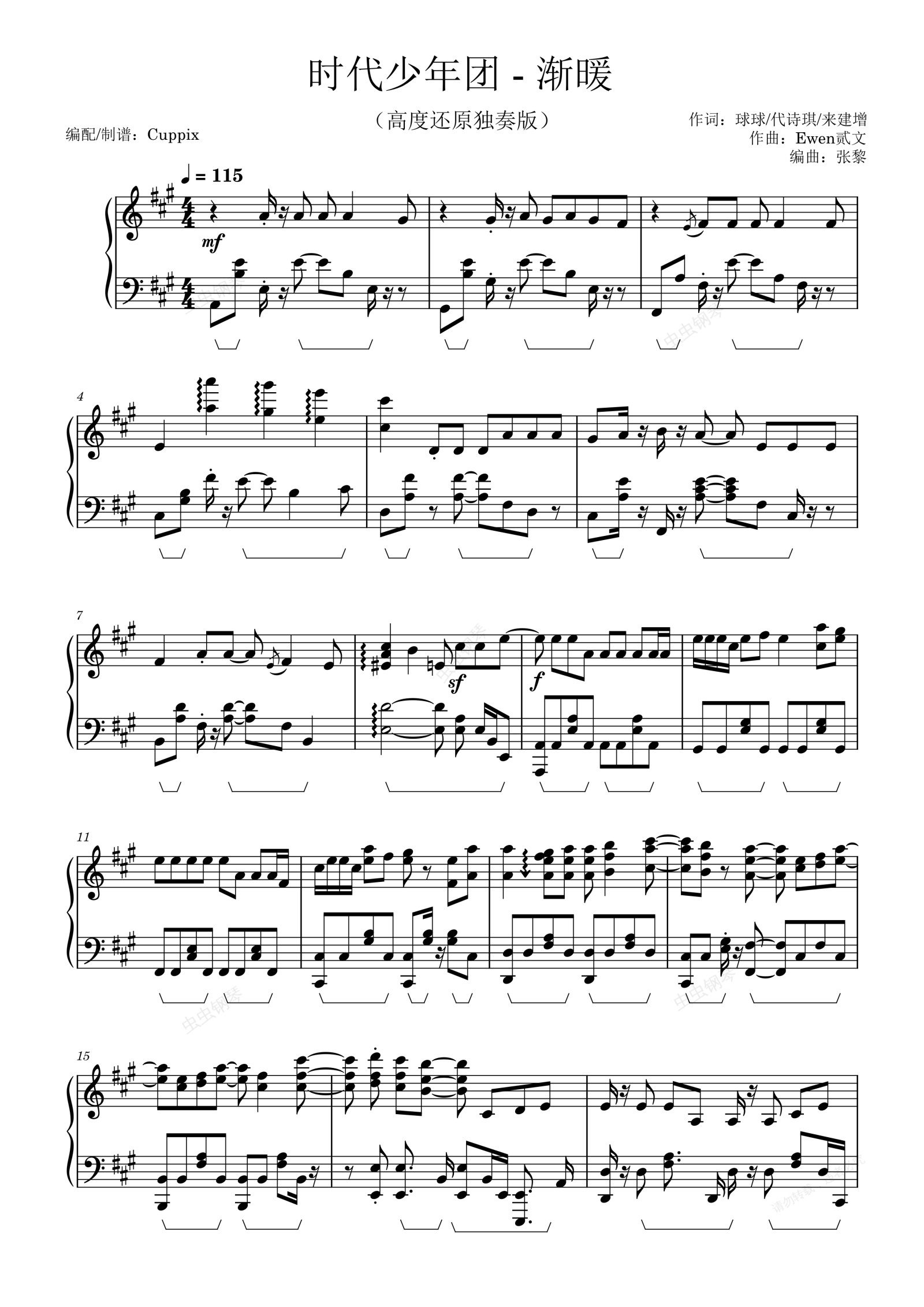 钢琴谱:时代少年团《渐暖》Cuppix编配-高度还原