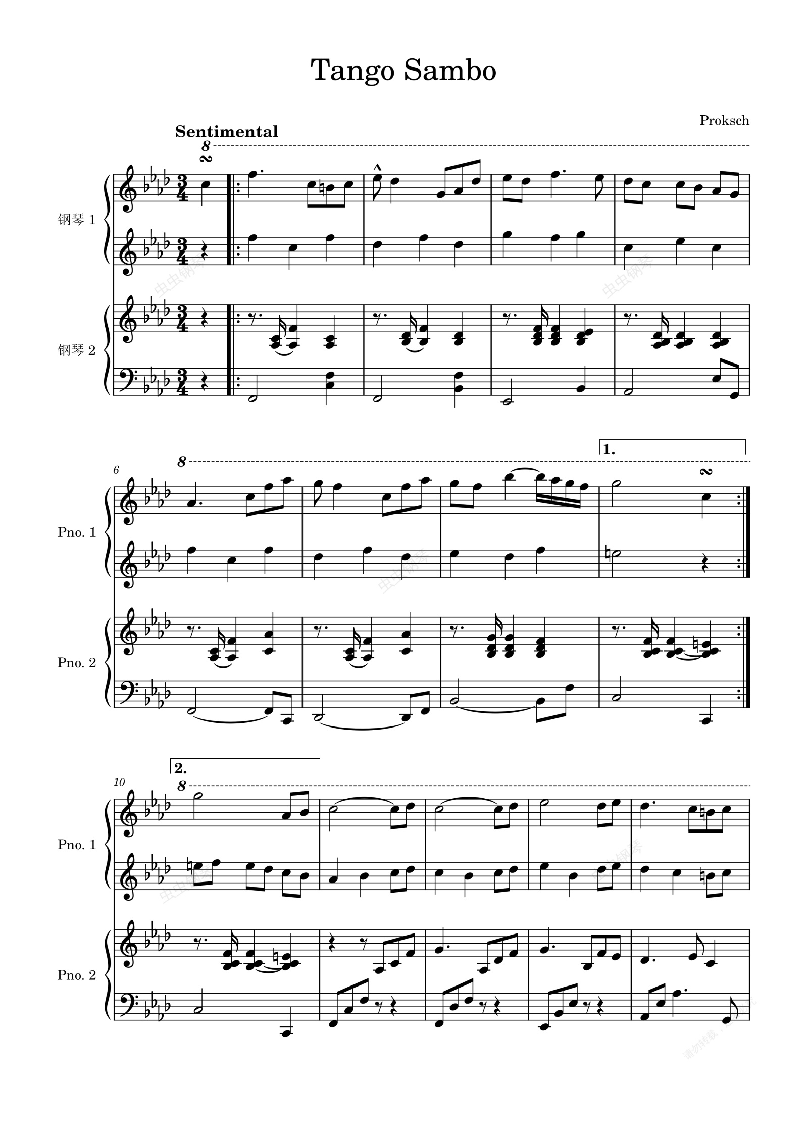 钢琴谱:探戈-桑巴(四手联弹)Proksch