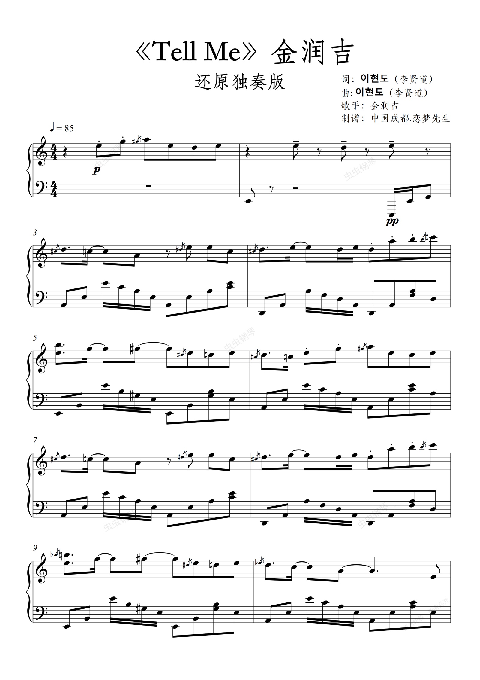钢琴谱:《Tell Me》金润吉-还原独奏版