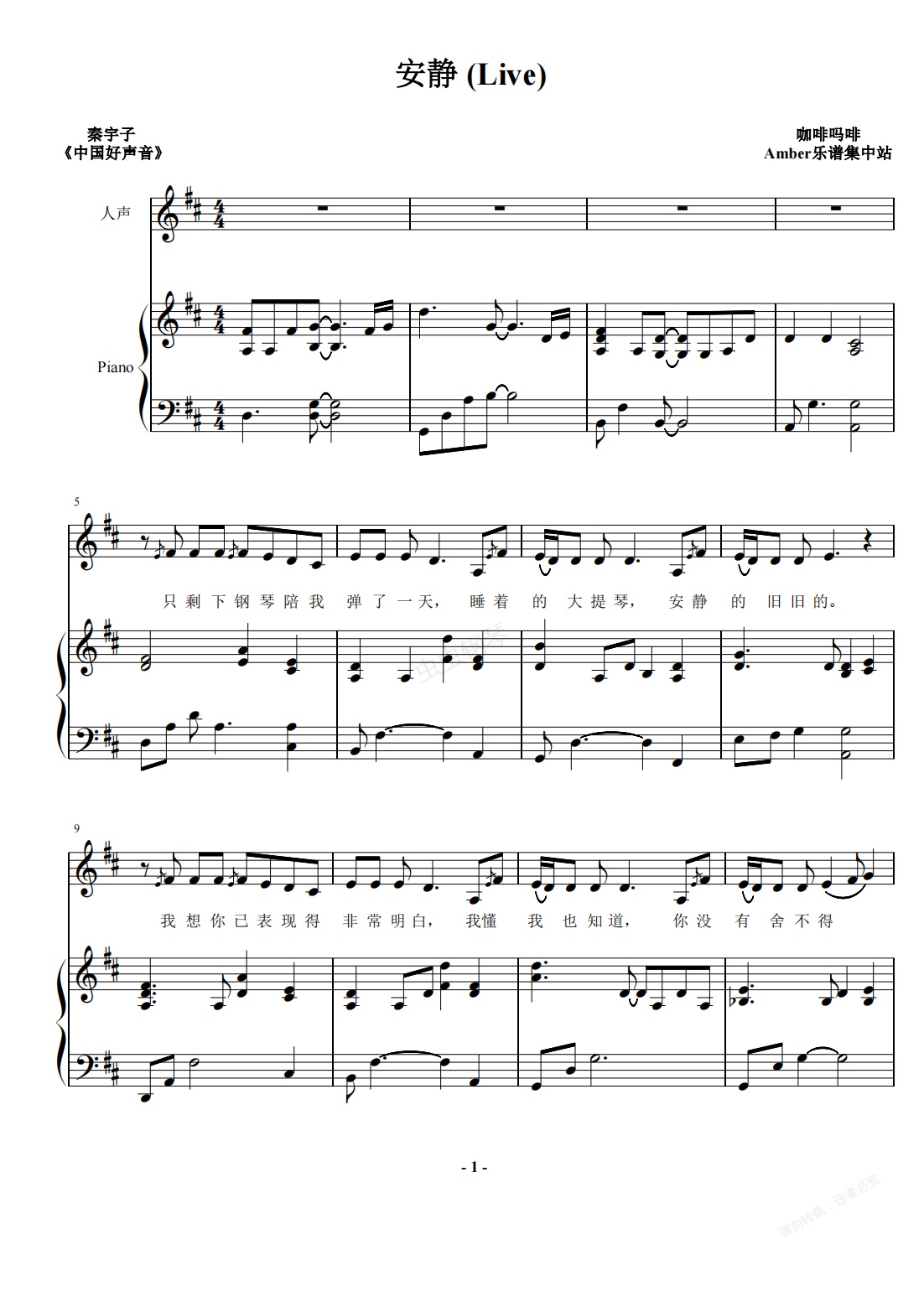 钢琴谱:安静-秦宇子版 钢琴伴奏谱