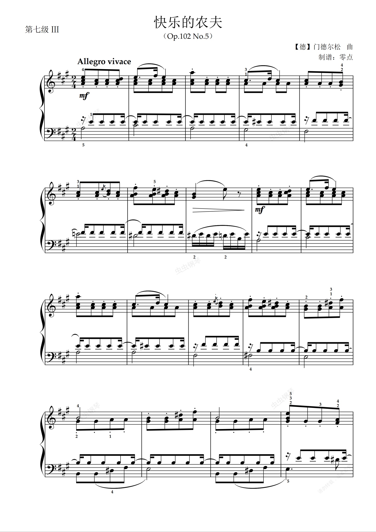 钢琴谱:第七级Ⅲ 快乐的农夫(Op.102 No.5)