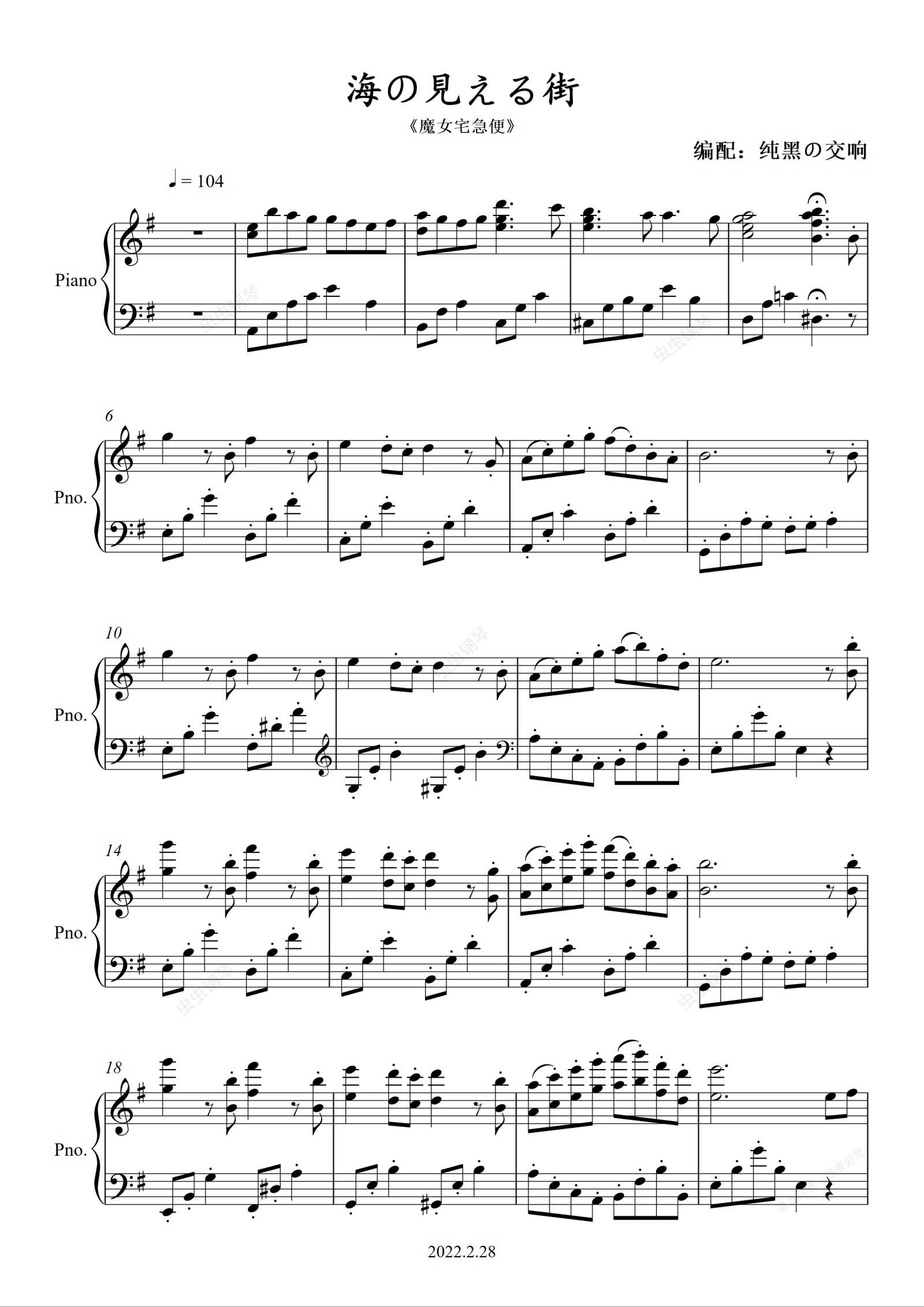 钢琴谱:海の見える街-《魔女宅急便》