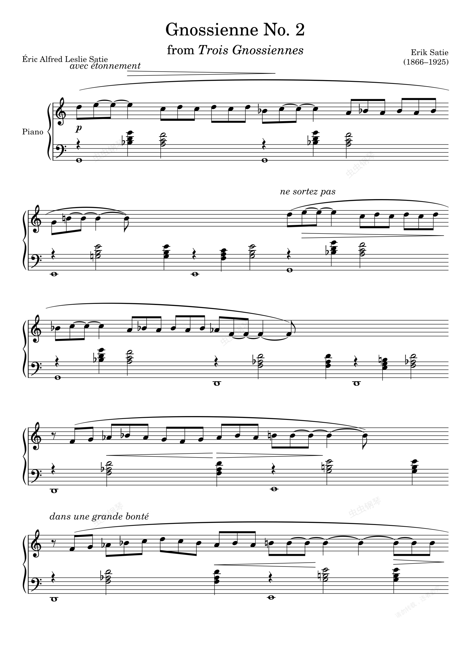 钢琴谱:玄秘曲第二号-萨蒂-Gnossienne No. 2