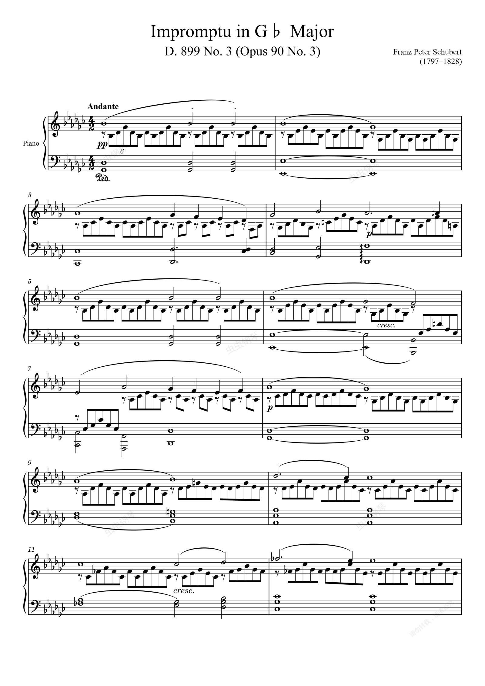 钢琴谱:舒伯特降G大调即兴曲 Impromptu D. 899 No. 3 in G♭ Major
