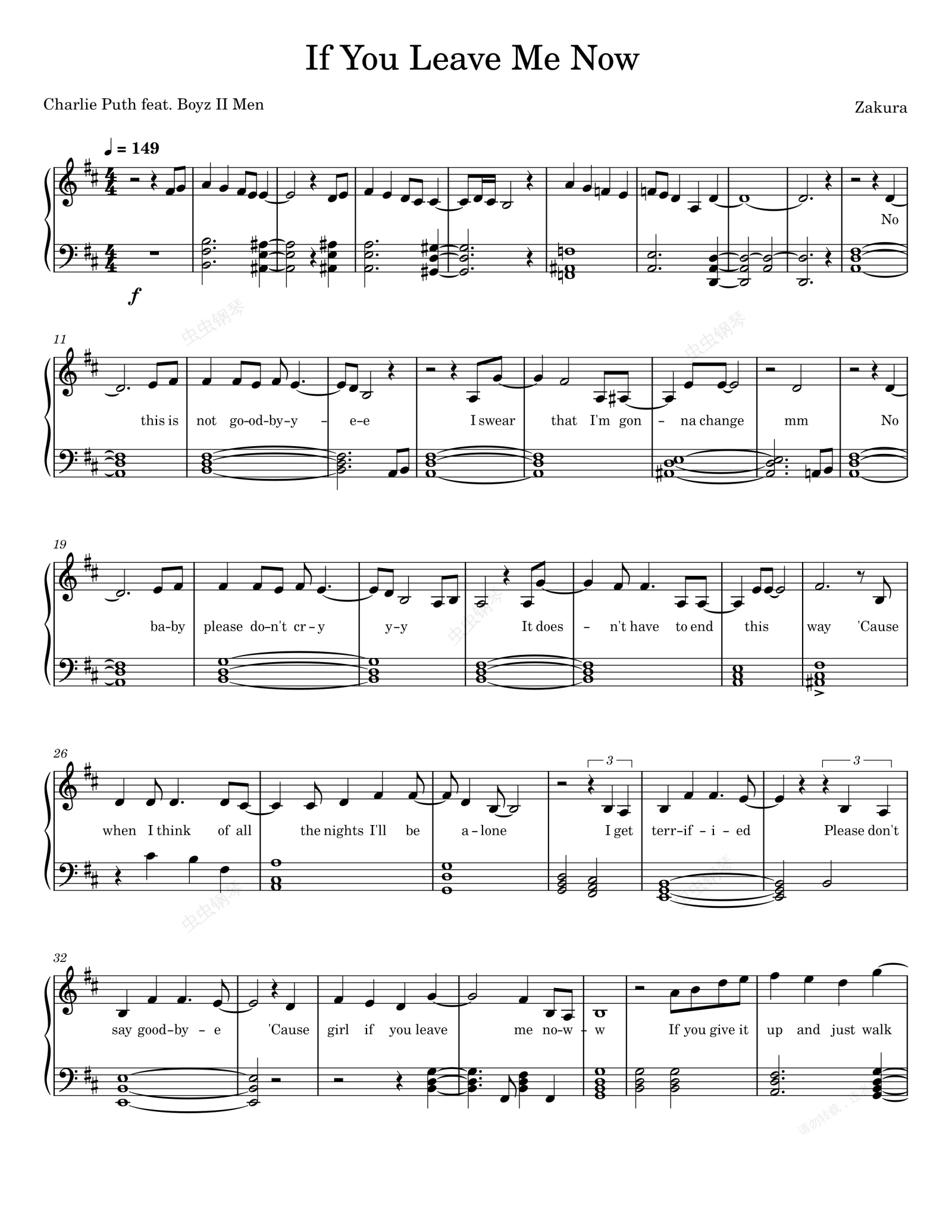 钢琴谱:Charlie Puth-If You Leave Me Now