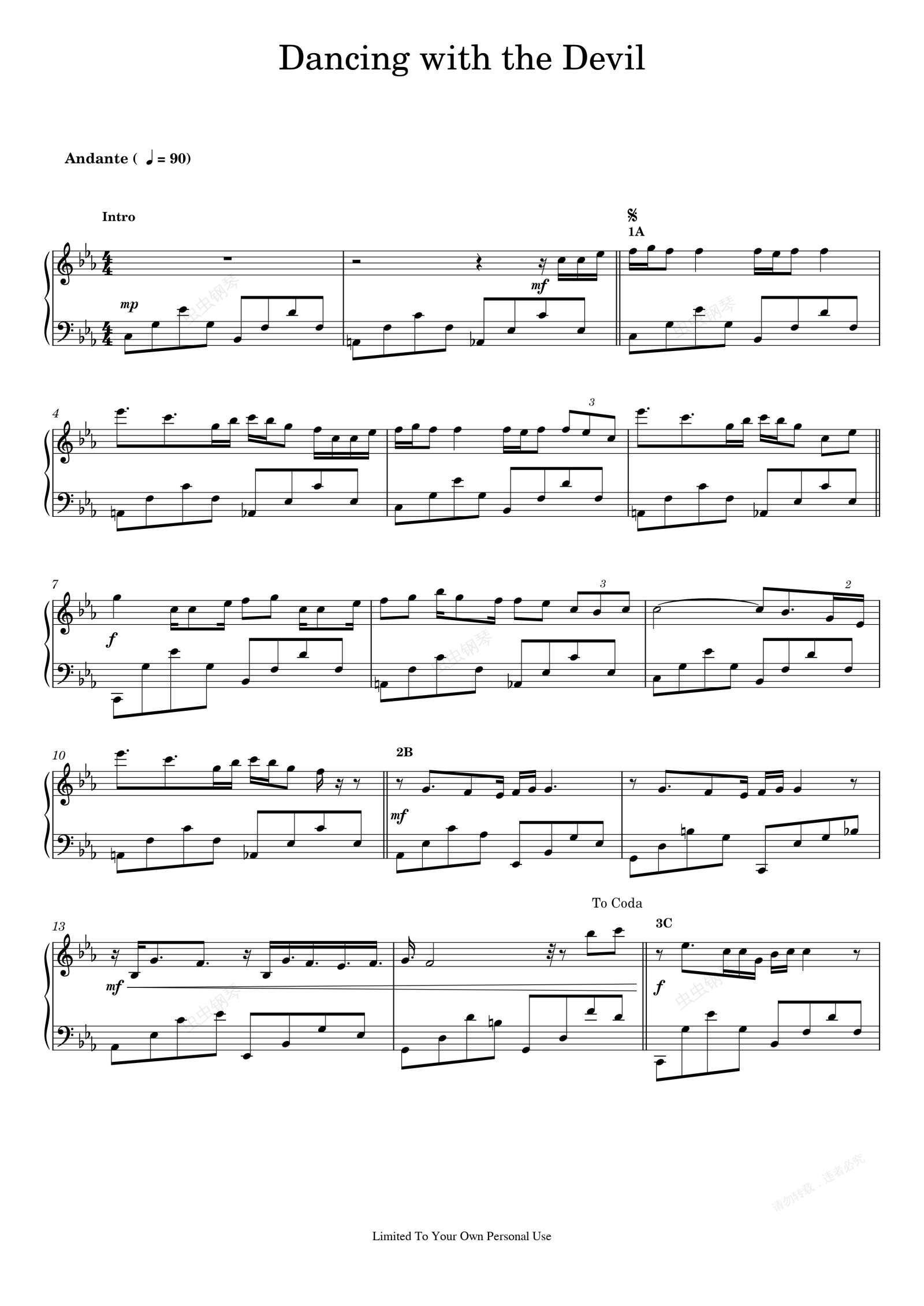 钢琴谱:Dancing with the Devil-Demi Lovato