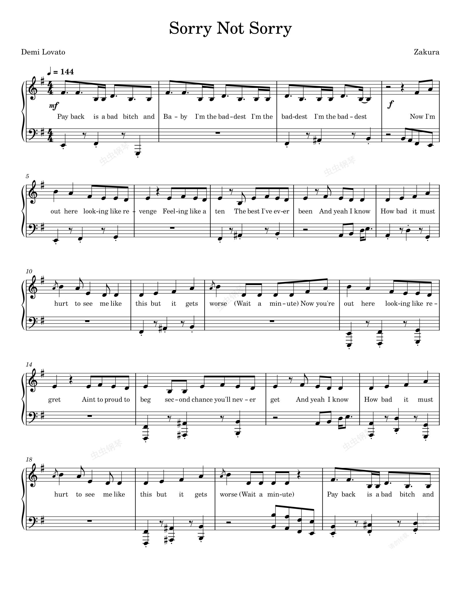 钢琴谱:Demi Lovato-Sorry Not Sorry
