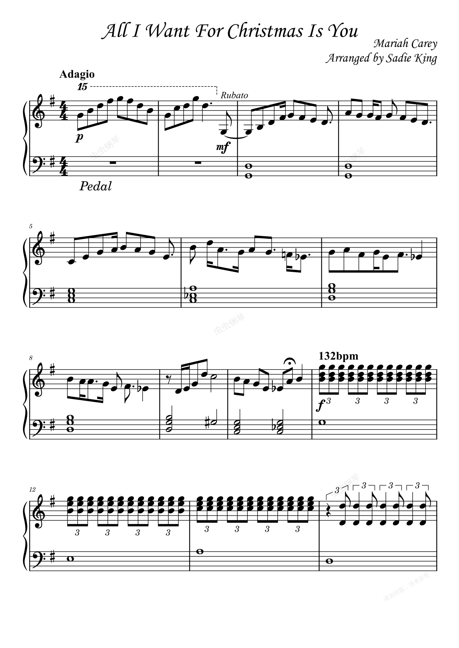钢琴谱:圣诞歌曲 All I Want For Christmas Is You