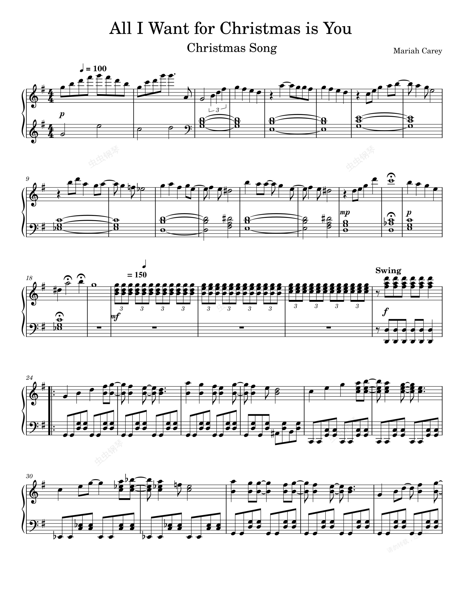 钢琴谱:圣诞歌曲 All I Want For Christmas Is You
