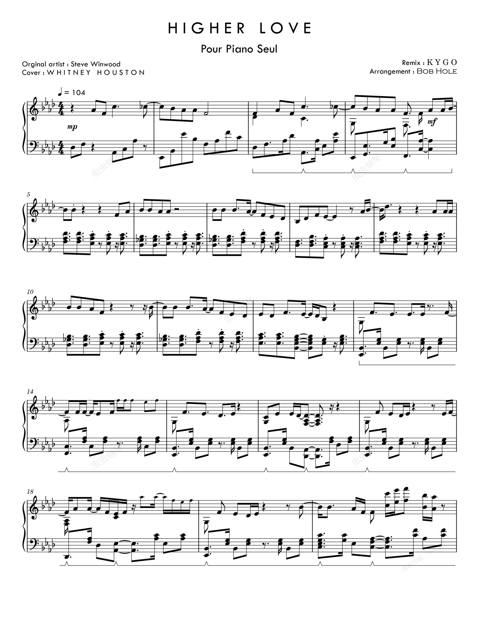 钢琴谱:Higher Love-Kygo / Whitney Houston