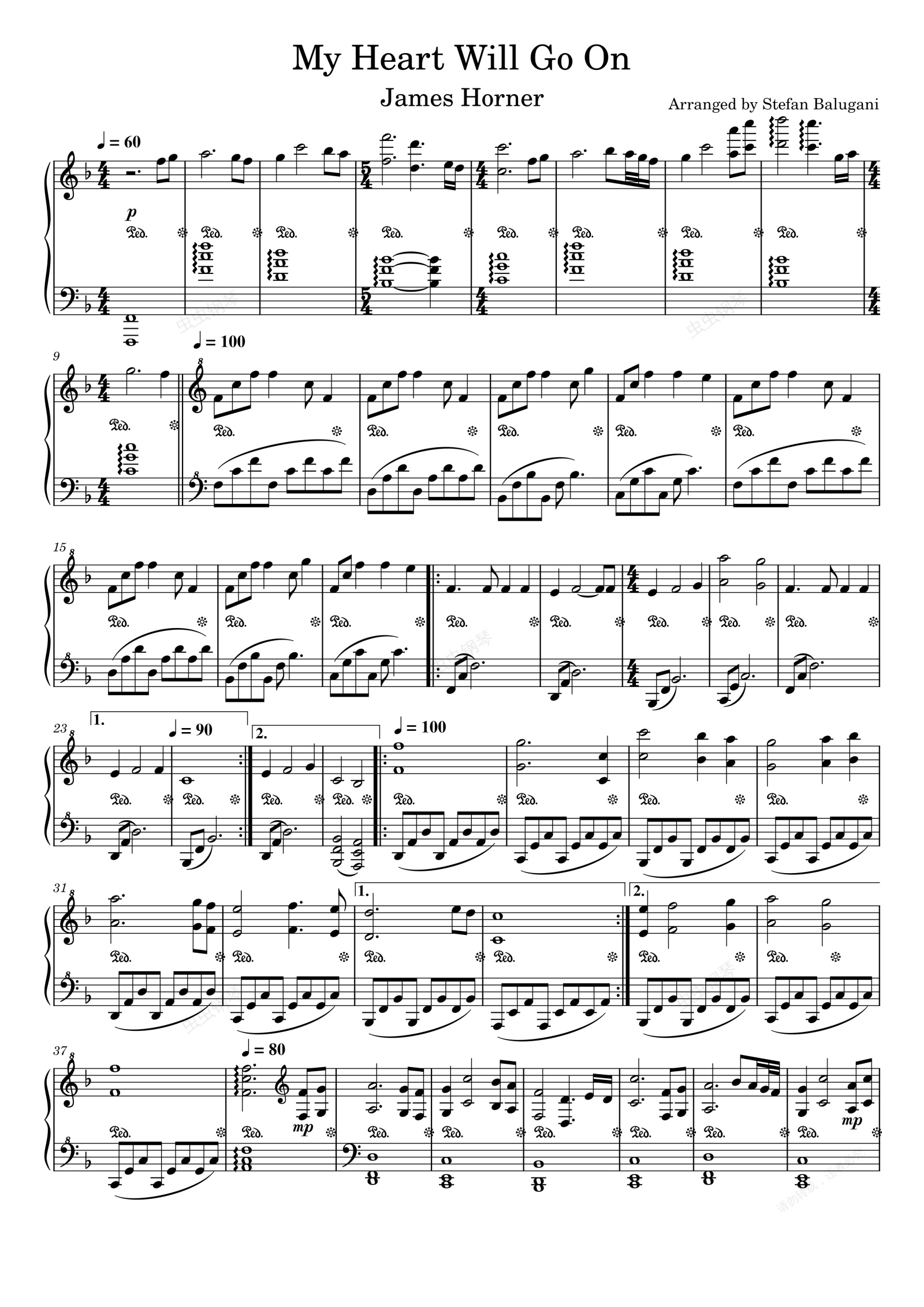 钢琴谱:我心永恒 My Heart Will Go On 泰坦尼克 主题曲