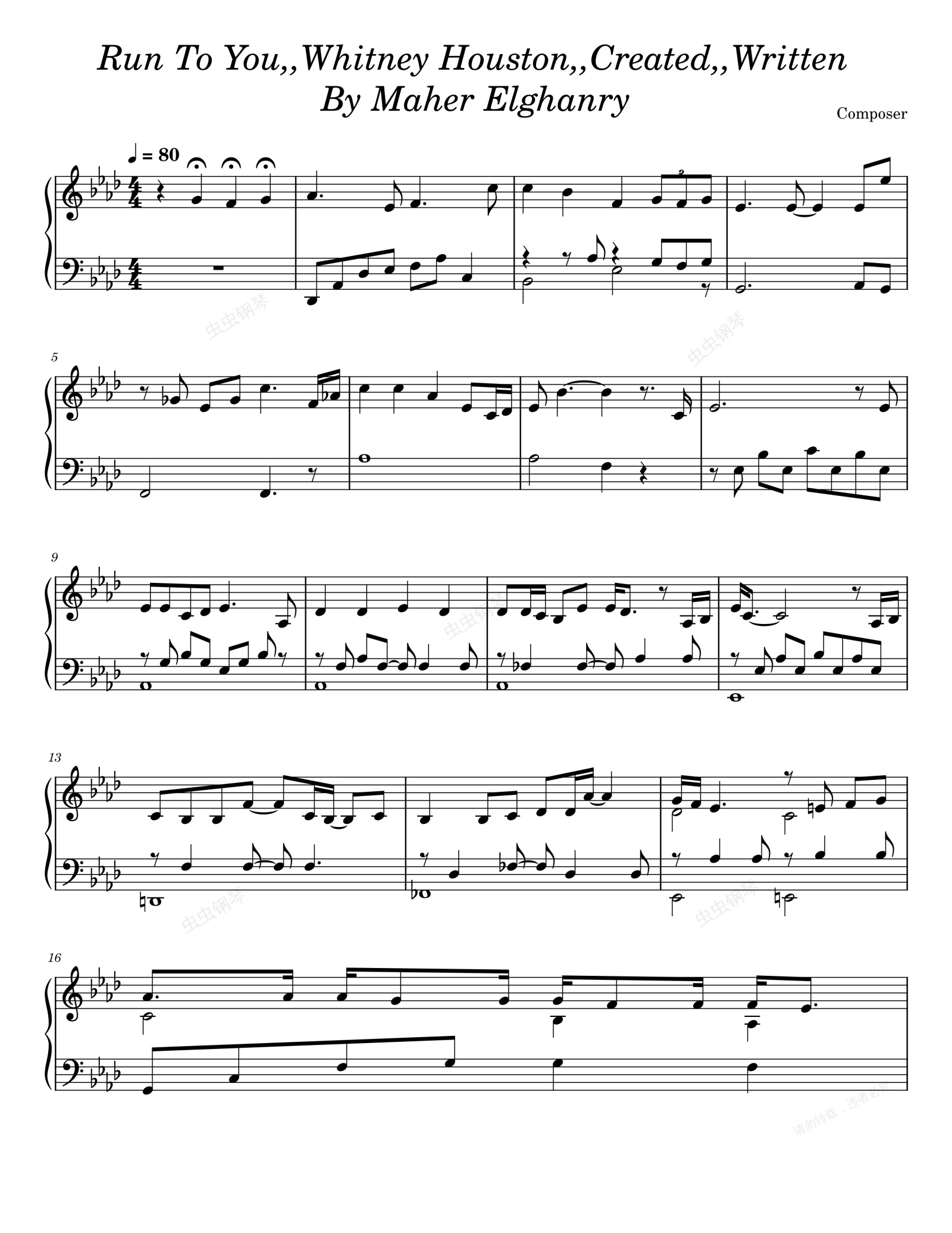 钢琴谱:惠特妮·休斯顿-Run To You-Whitney Houston