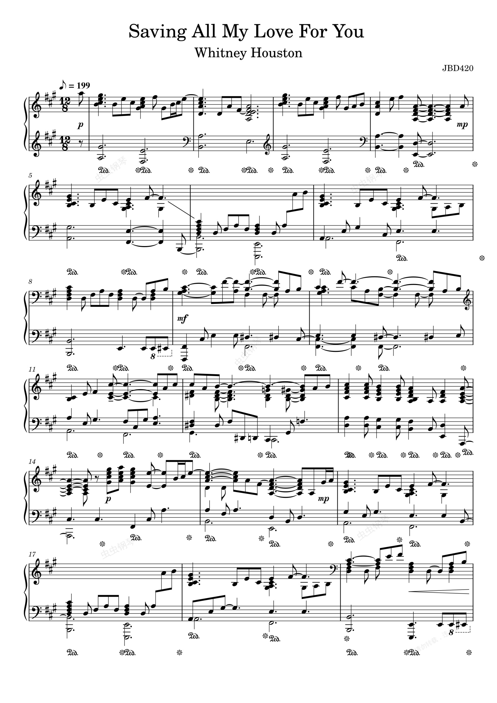 钢琴谱:Saving All My Love For You-Whitney Houston