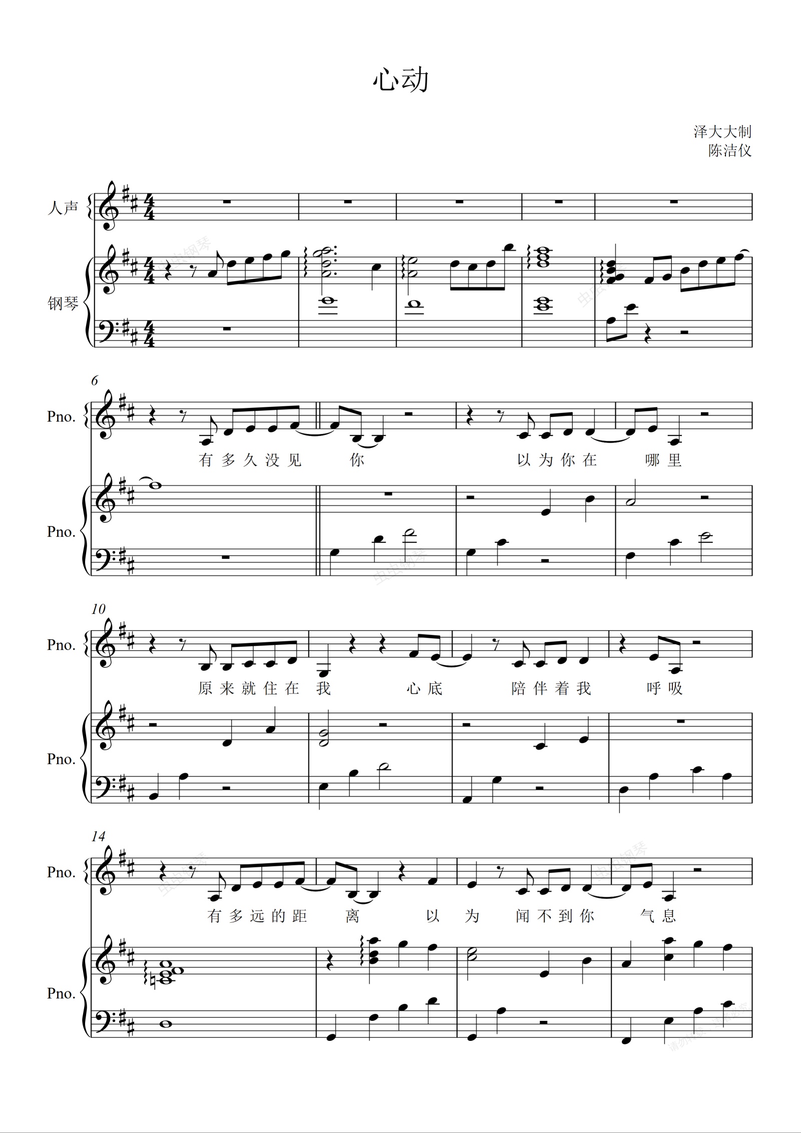钢琴谱:心动【精编弹唱附词】泽大大 陈洁仪