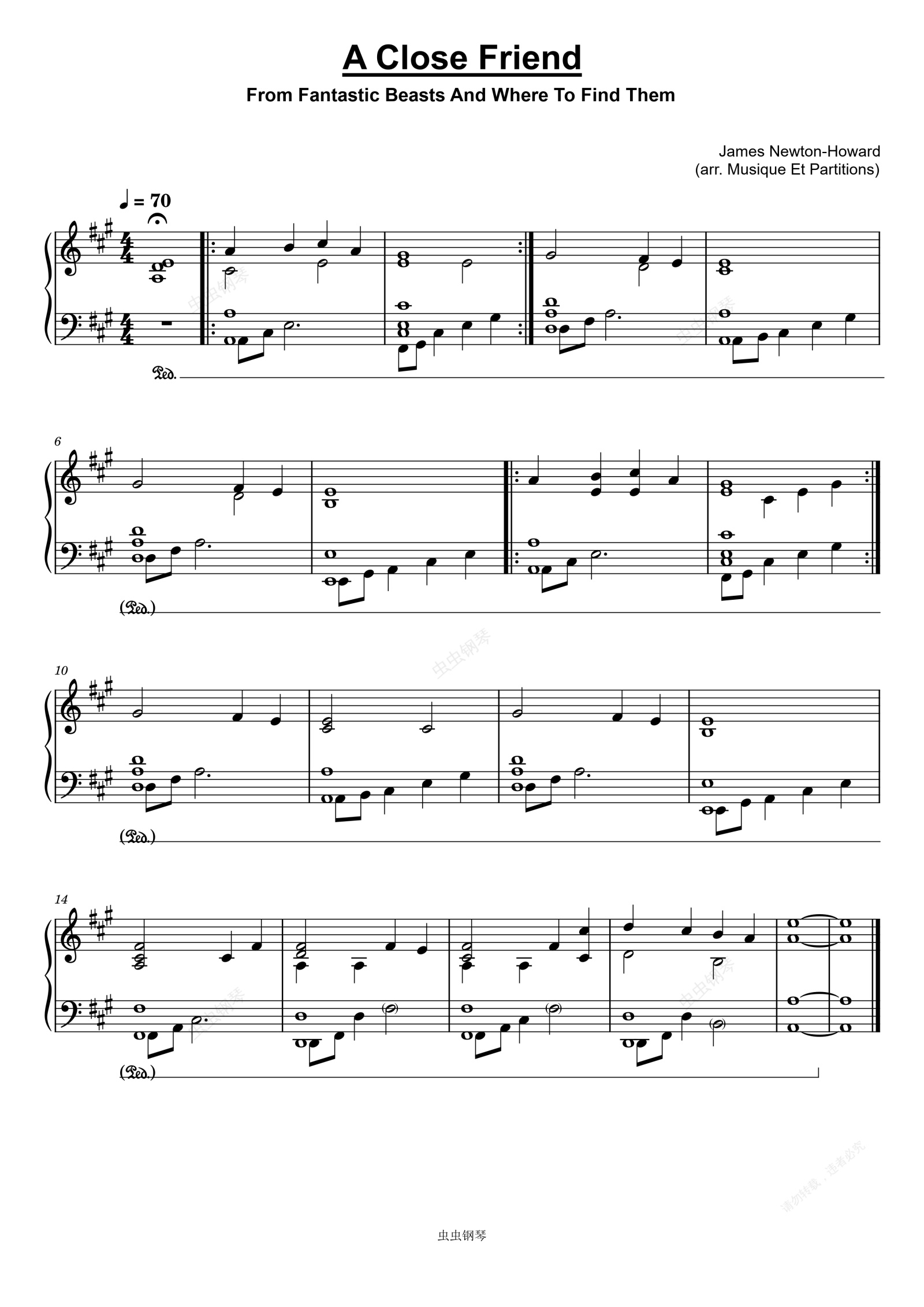 钢琴谱:A Close Friend 神奇动物在哪里 电影