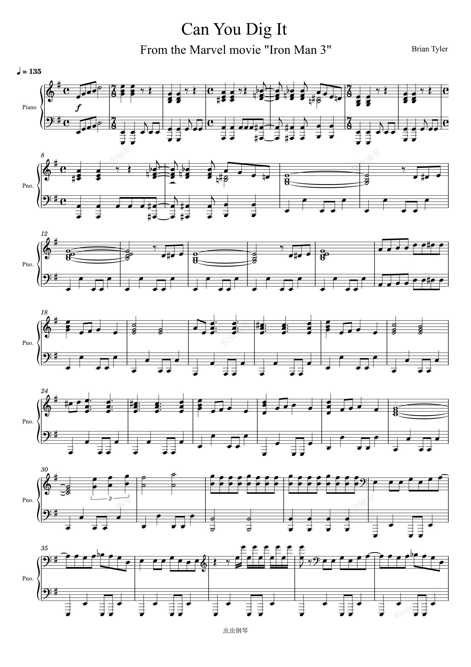 钢琴谱:钢铁侠3 电影 Can You Dig It