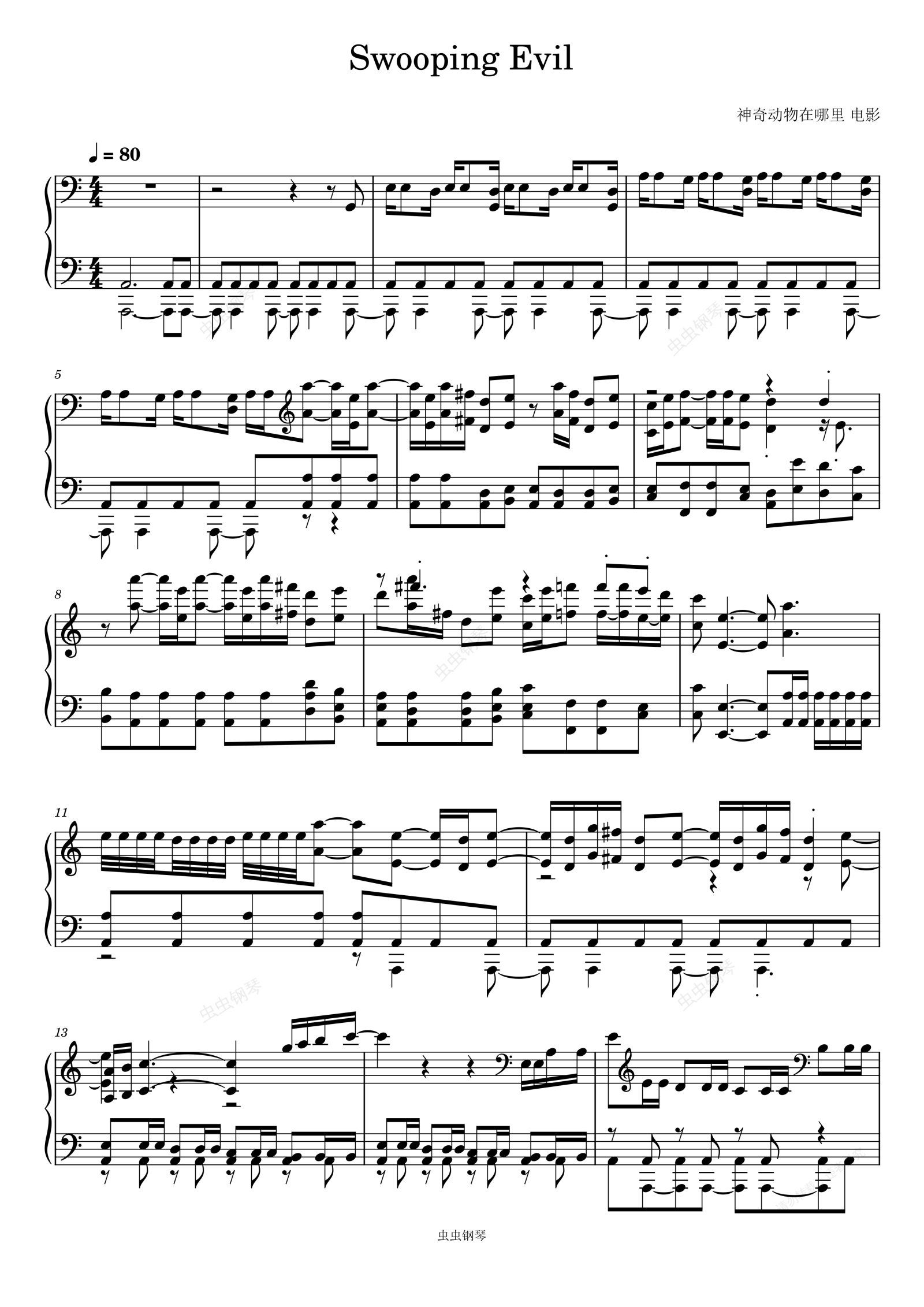 钢琴谱:神奇动物在哪里 电影 Swooping Evil- James Newton Howard