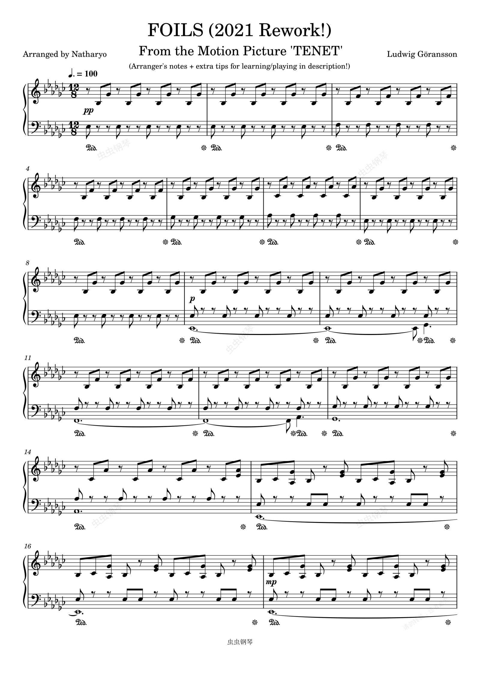 钢琴谱:FOILS - TENET (信条) 电影