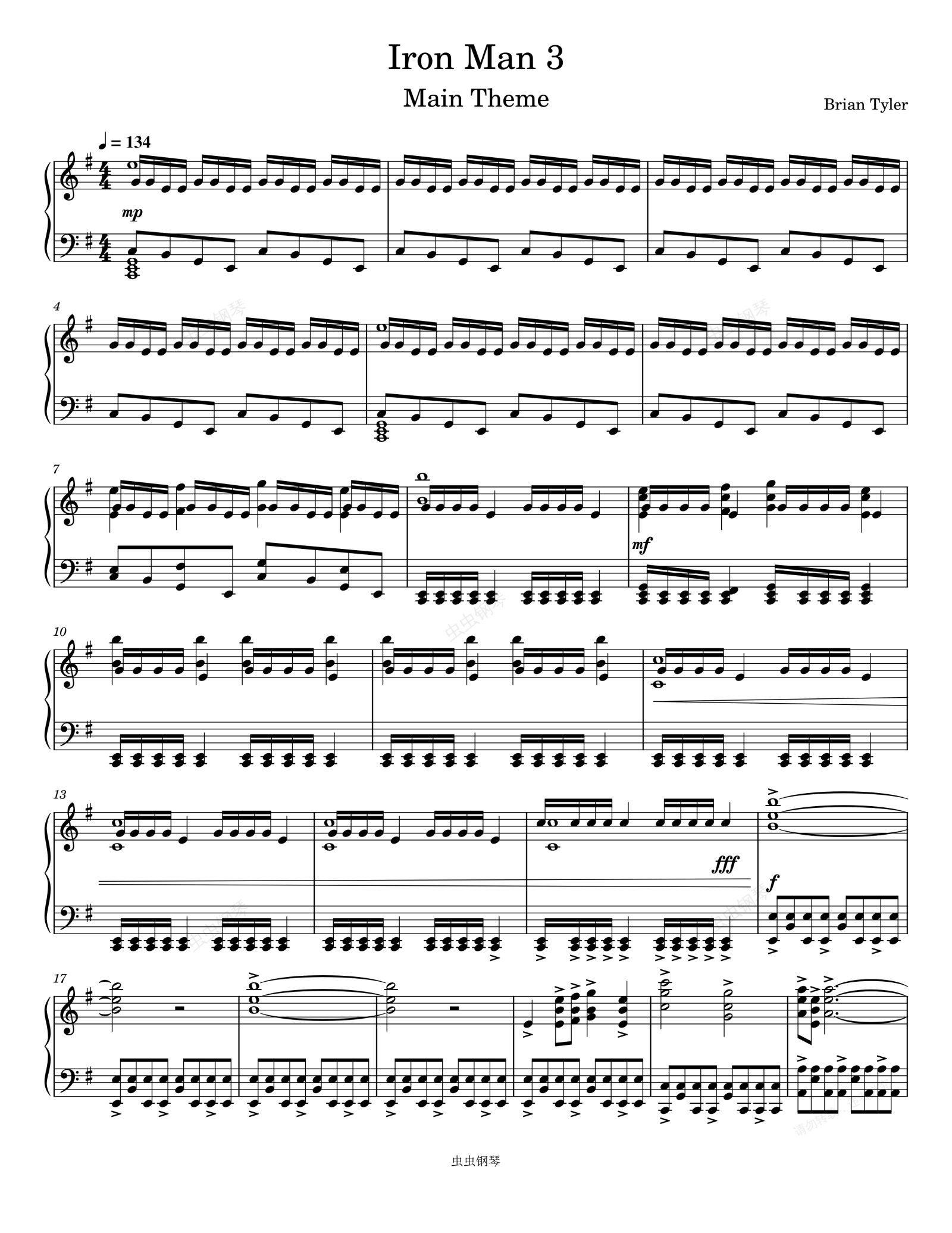 钢琴谱:钢铁侠3 电影 Iron Man 3
