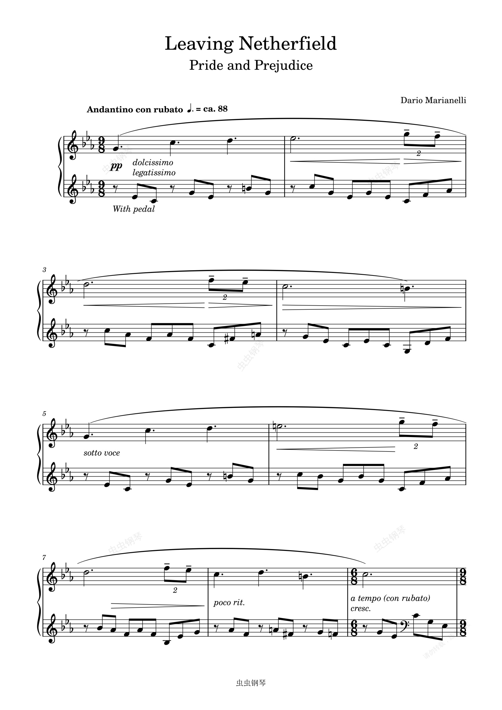 钢琴谱:傲慢与偏见 电影 Leaving Netherfield
