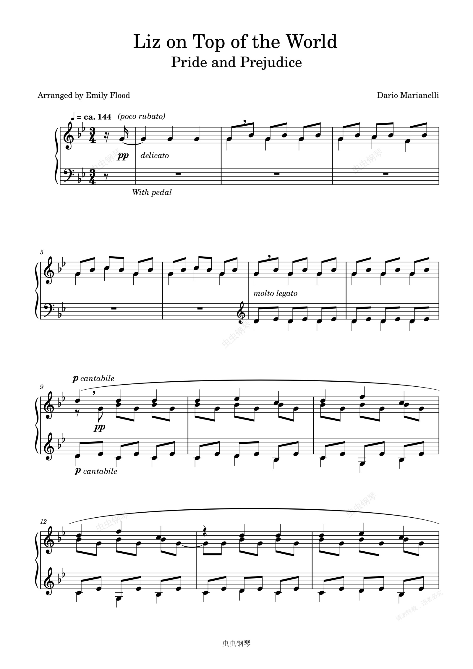钢琴谱:傲慢与偏见 电影 Liz on Top of the World
