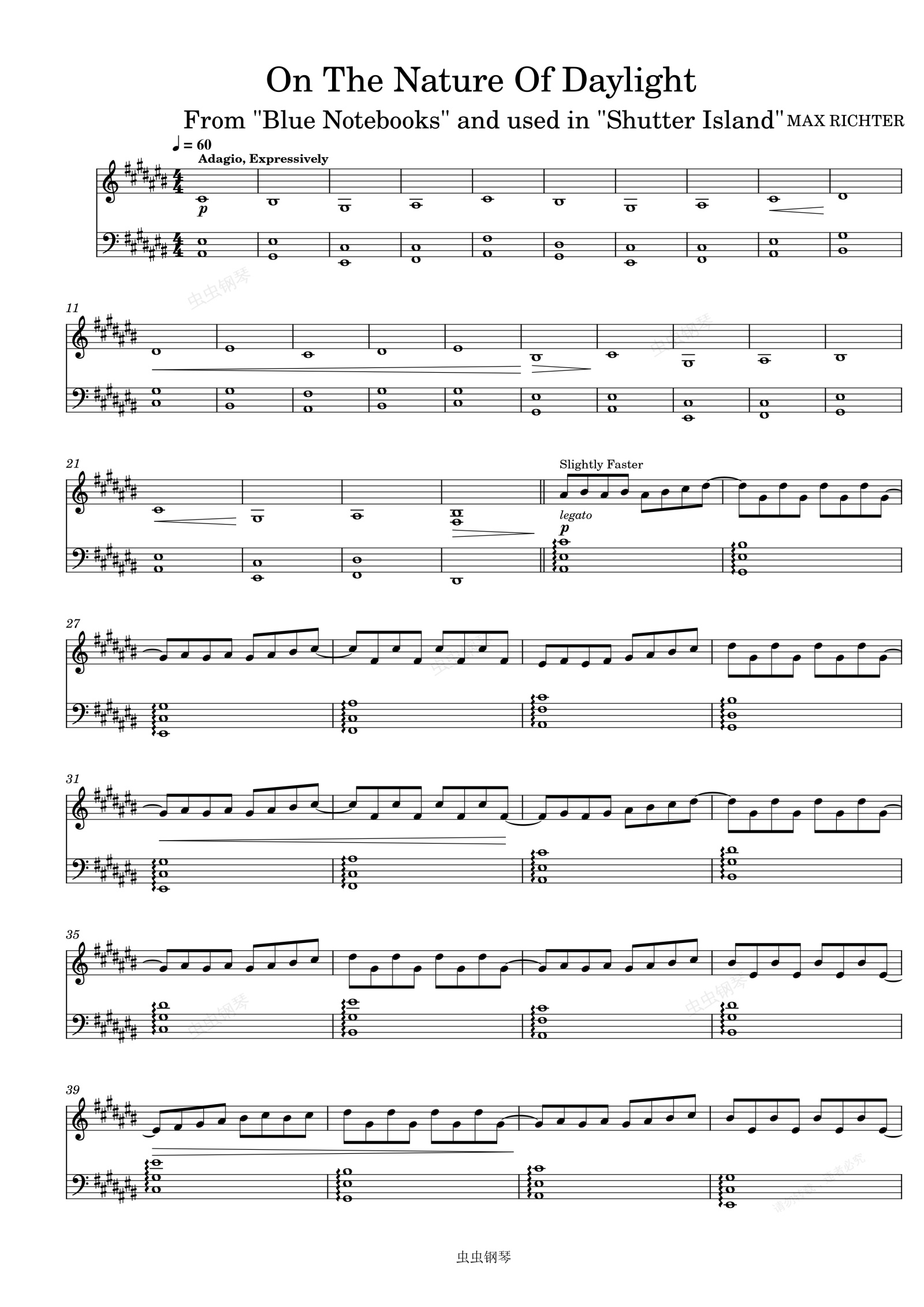 钢琴谱:禁闭岛 电影 On The Nature Of Daylight