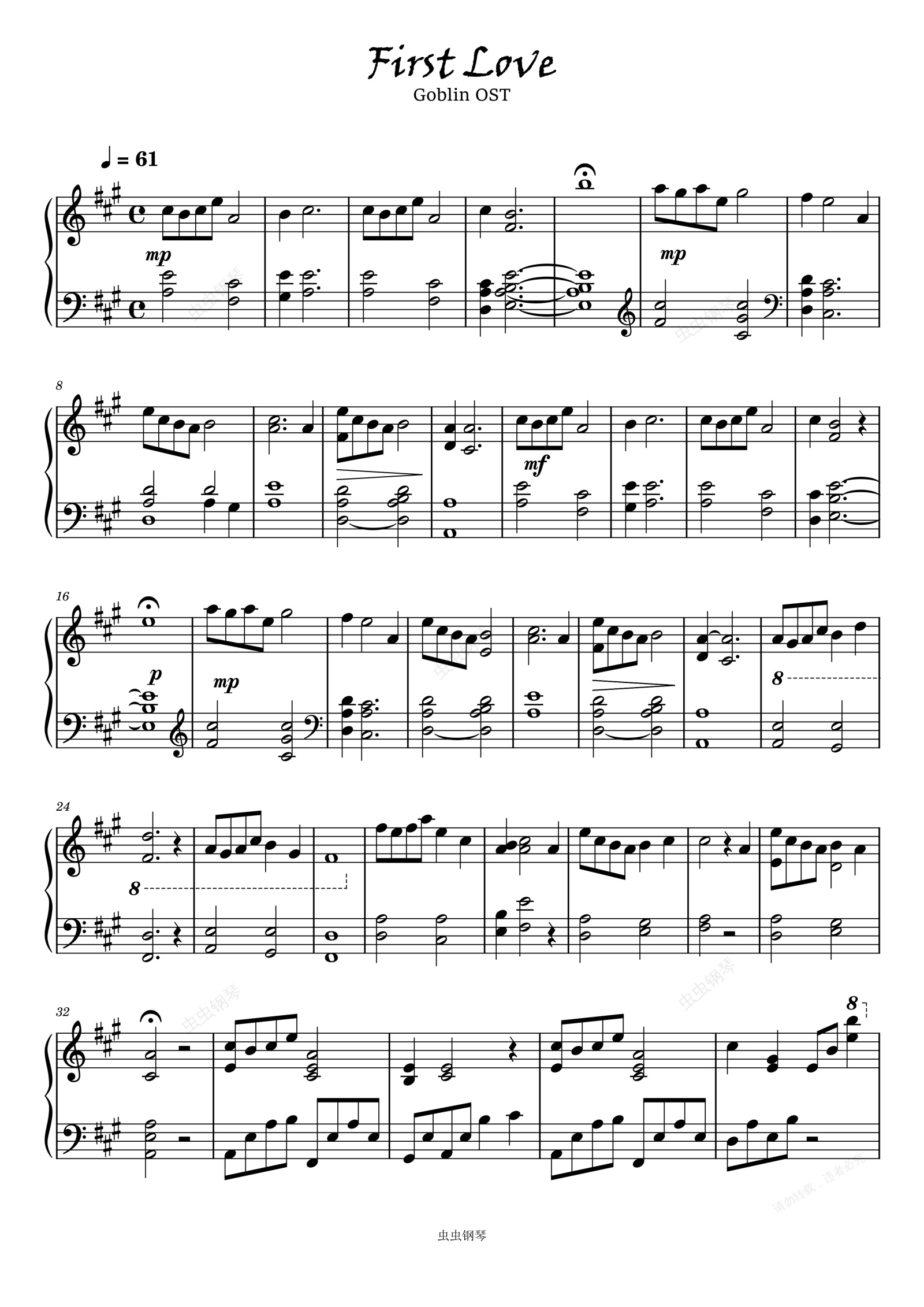 钢琴谱:孤单又灿烂的神-鬼怪 韩剧 First Love