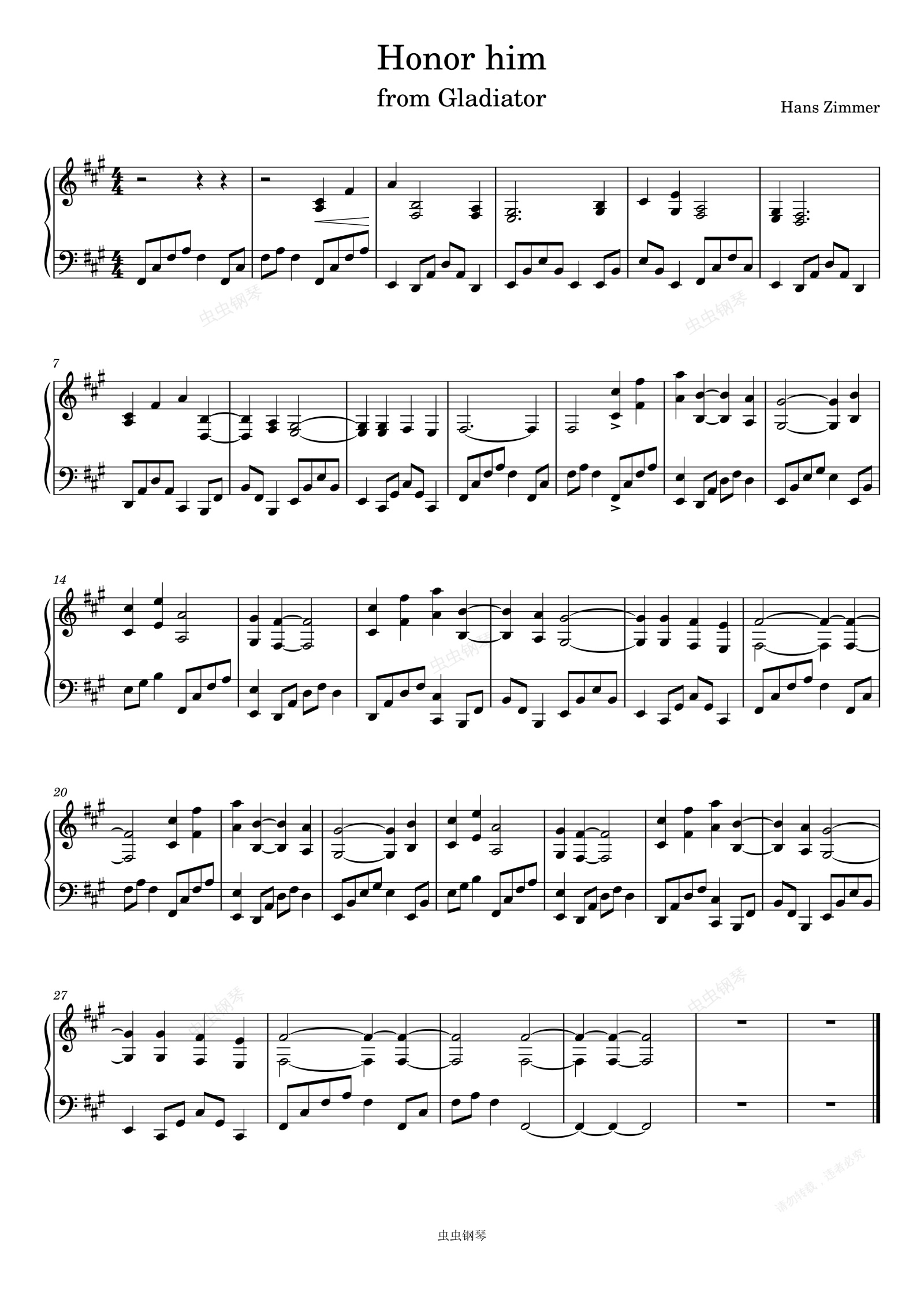 钢琴谱:角斗士 动画 Gladiator Theme-Honor Him