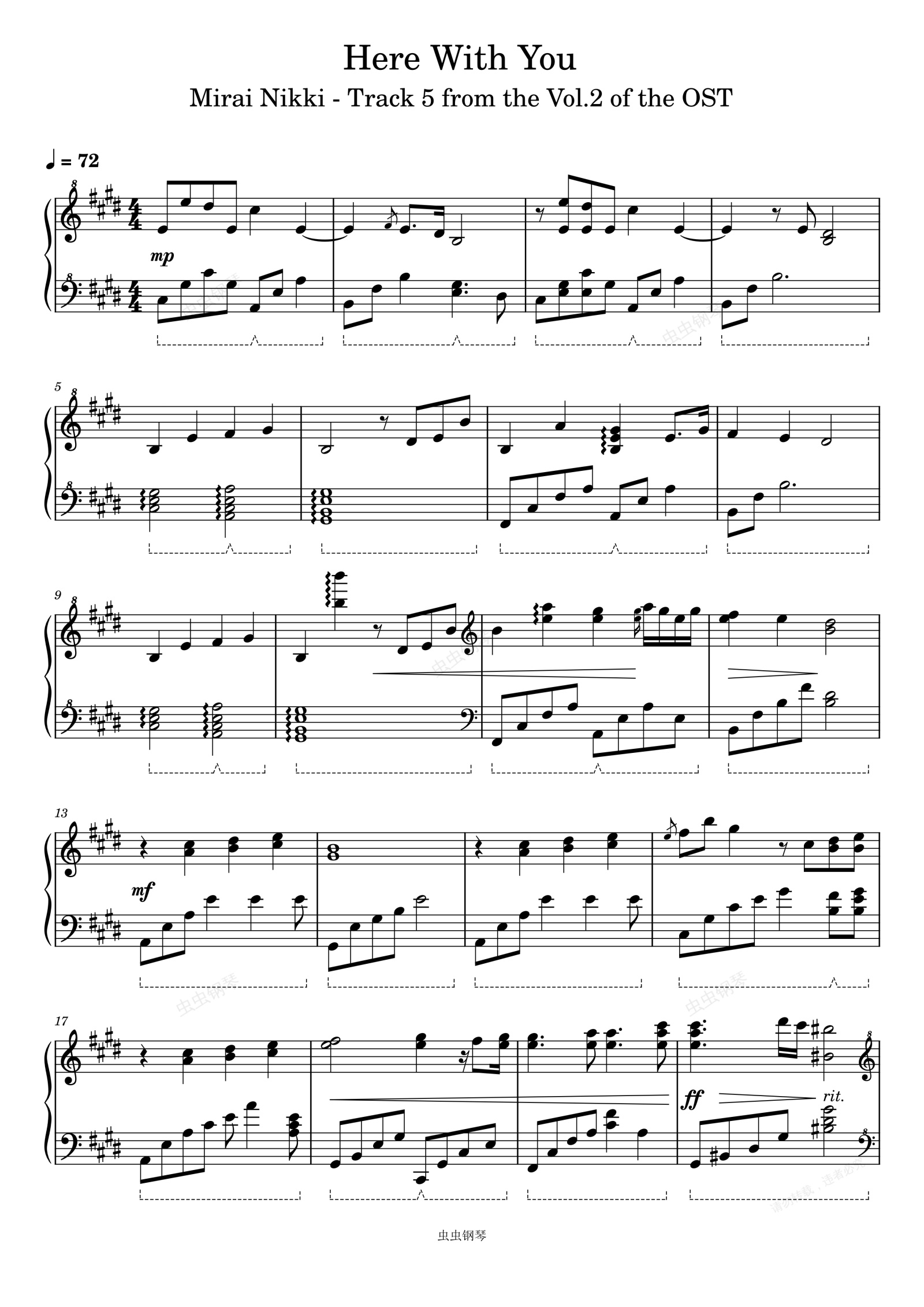 钢琴谱:Here With You/想いの寄り方は不均一 未来日记 动画
