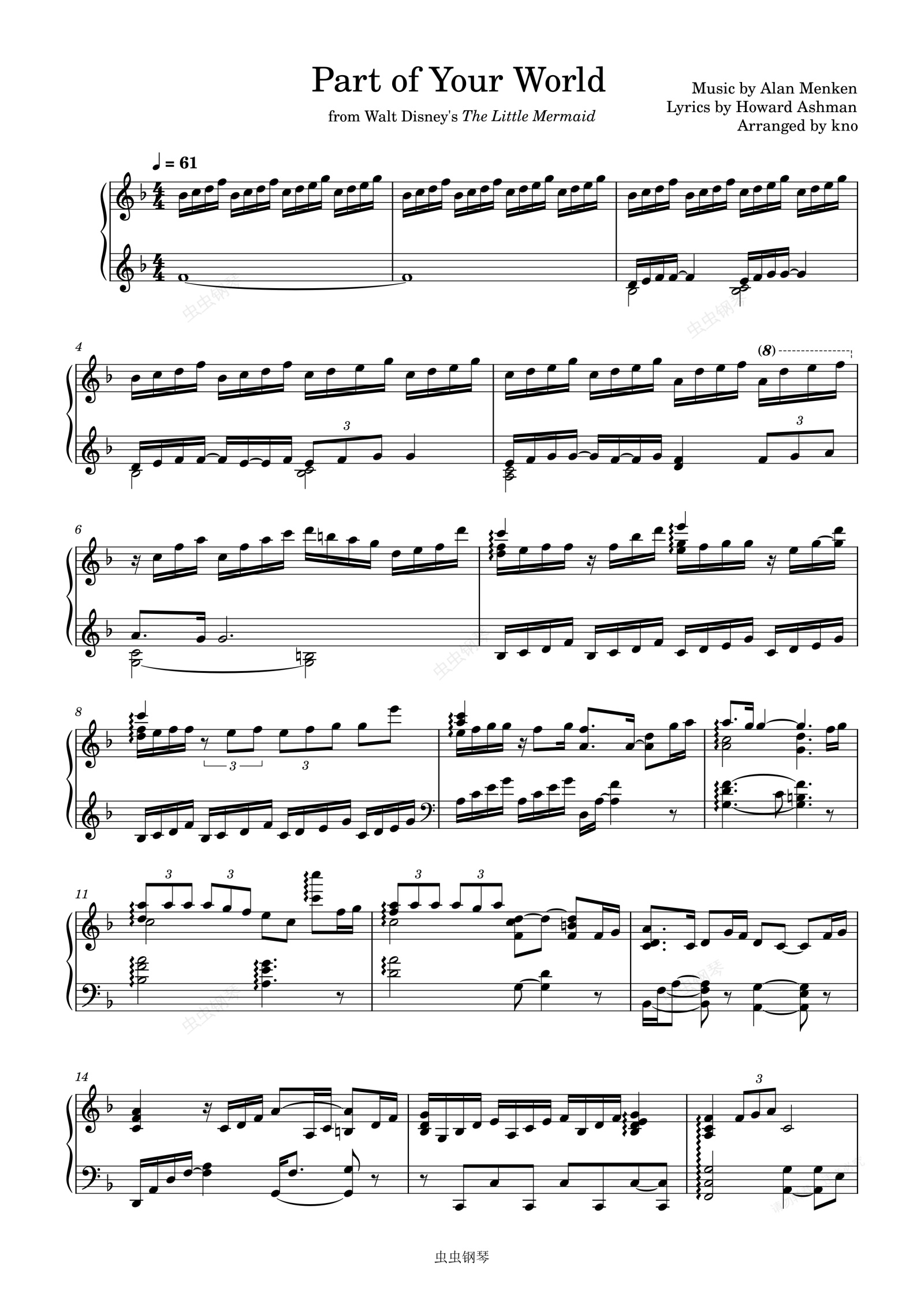 钢琴谱:小美人鱼 电影 Part of Your World-Alan Menken