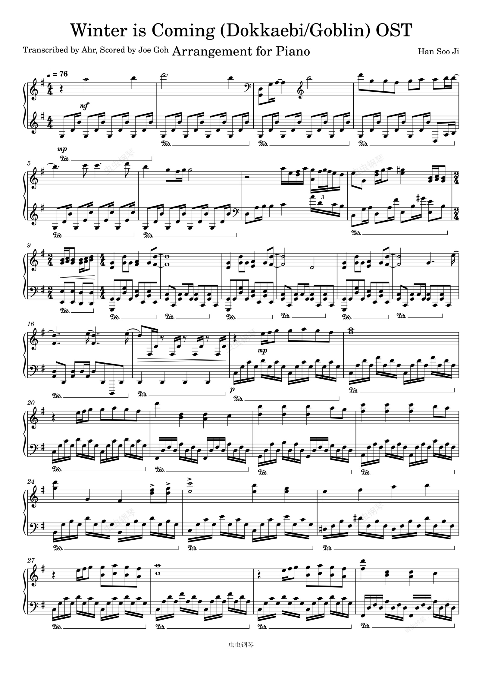 钢琴谱:누구나 겨울이 오면 Winter is Coming 鬼怪 韩剧