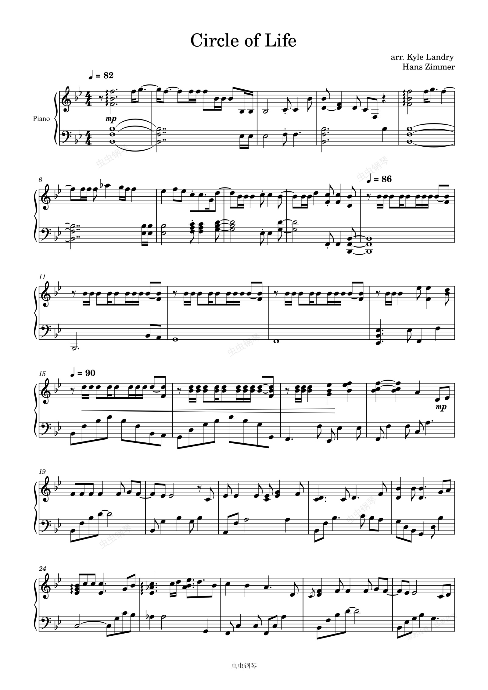钢琴谱:狮子王 电影 Circle of Life