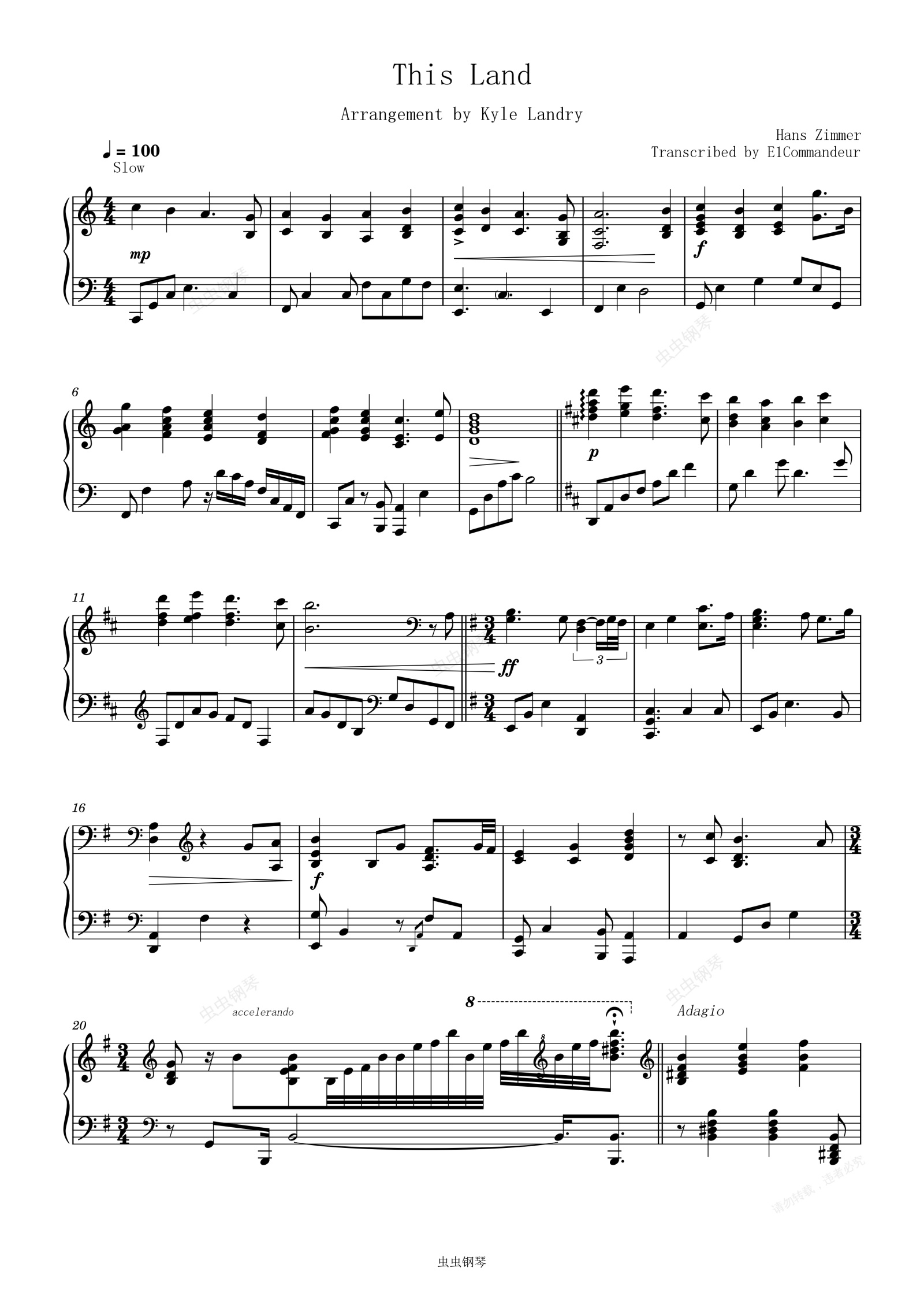 钢琴谱:狮子王 电影 This Land-Hans Zimmer