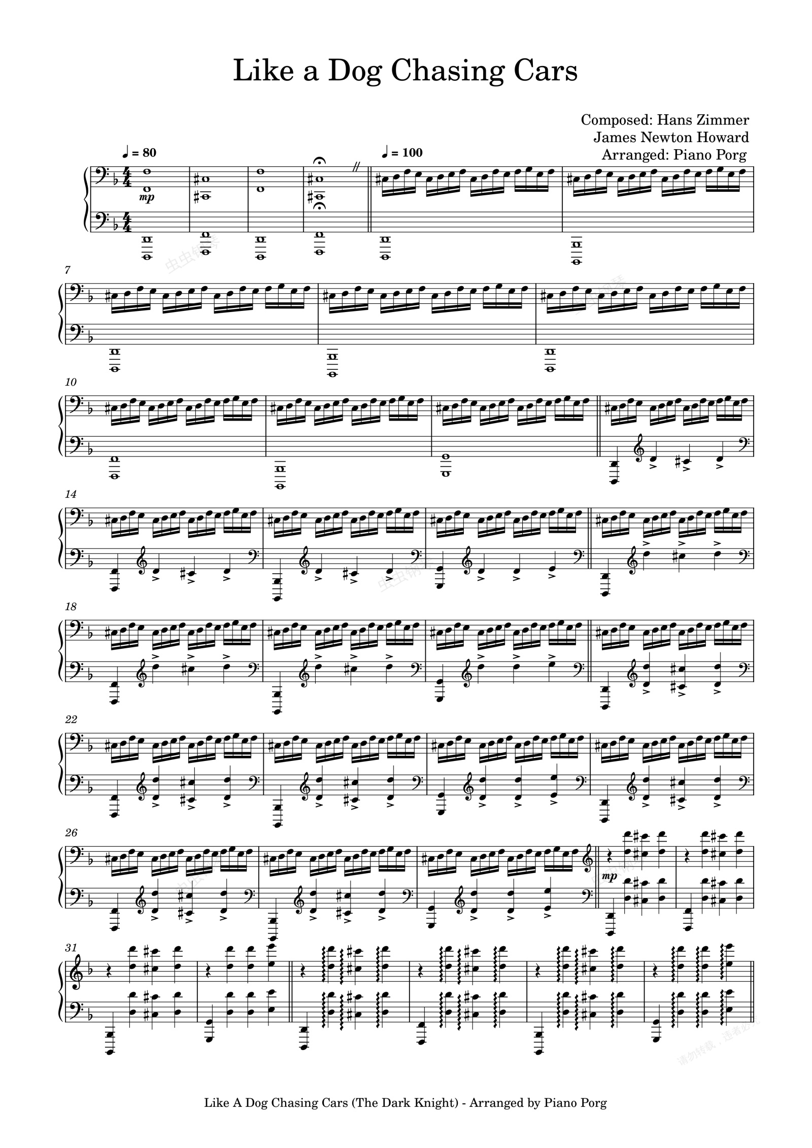 钢琴谱:蝙蝠侠:黑暗骑士 电影 Like a Dog Chasing Cars