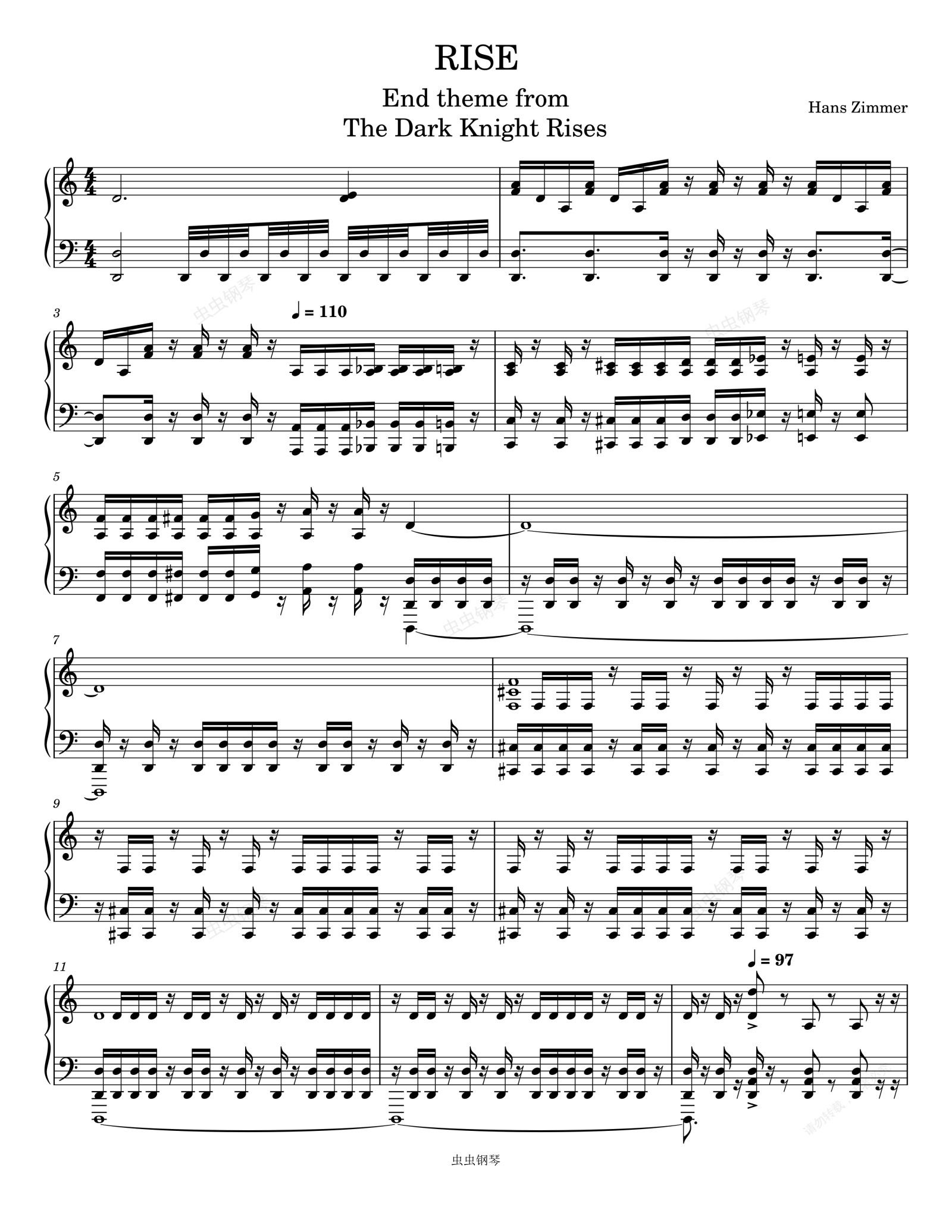 钢琴谱:蝙蝠侠:黑暗骑士崛起 电影 Rise (From "The Dark Knight Rises")
