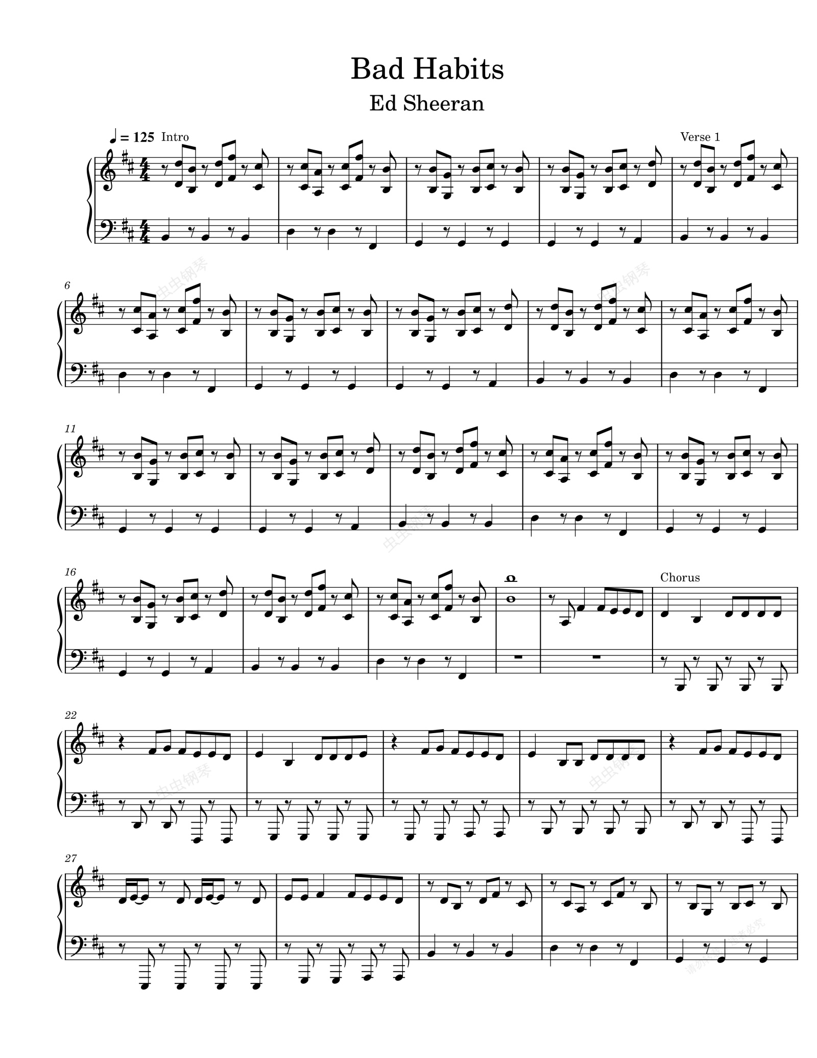 钢琴谱:Bad Habits-Ed Sheeran Piano