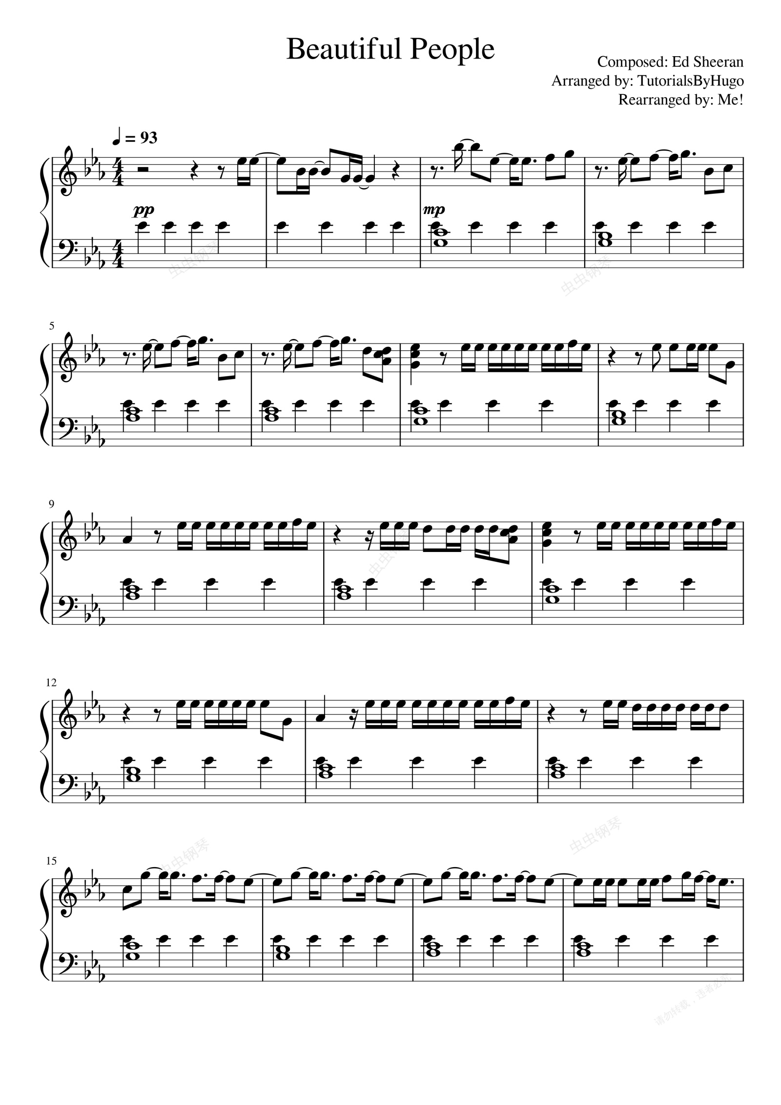 钢琴谱:Ed Sheeran-Beautiful People