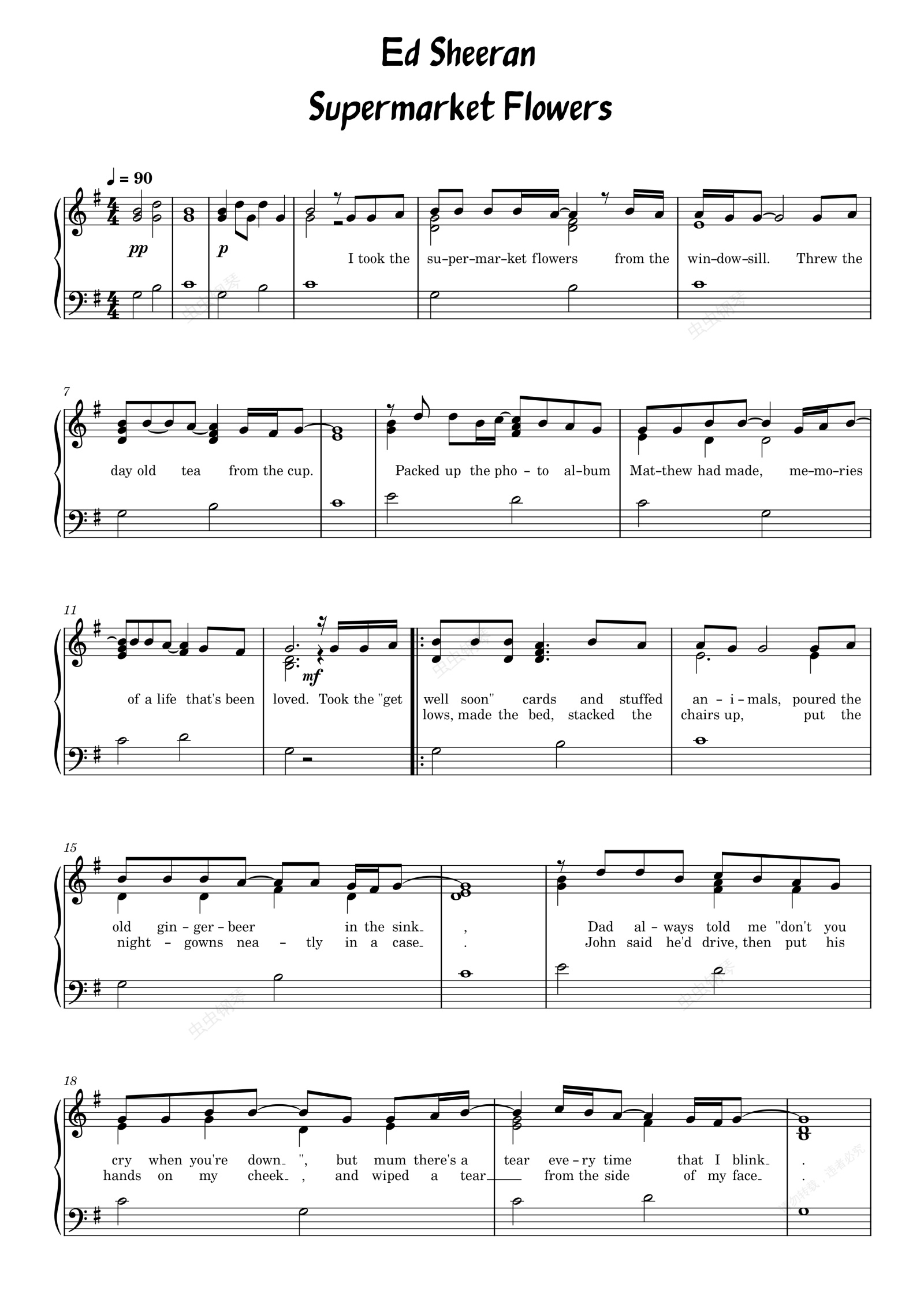 钢琴谱:Supermarket Flowers-Ed Sheeran