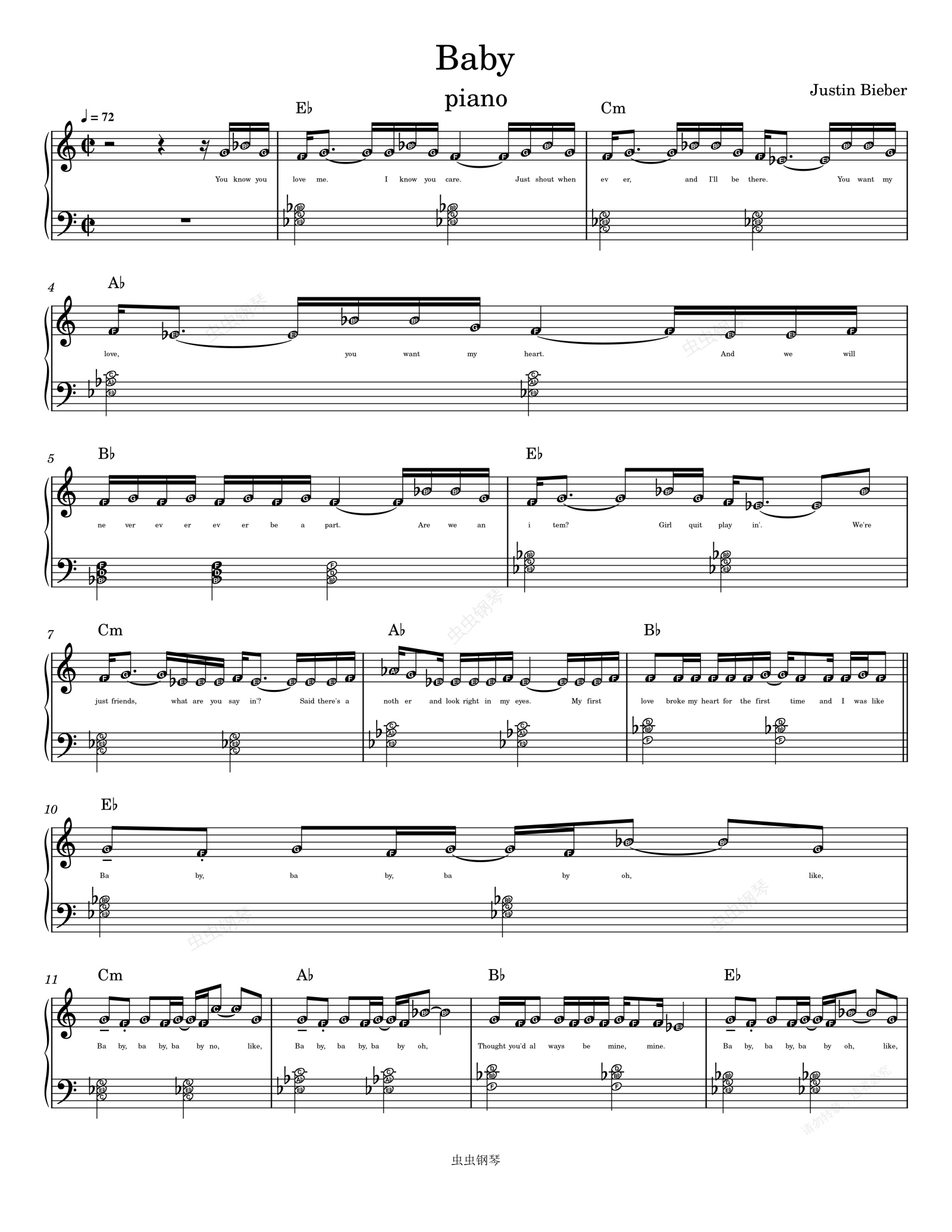 钢琴谱:Baby-Justin Bieber