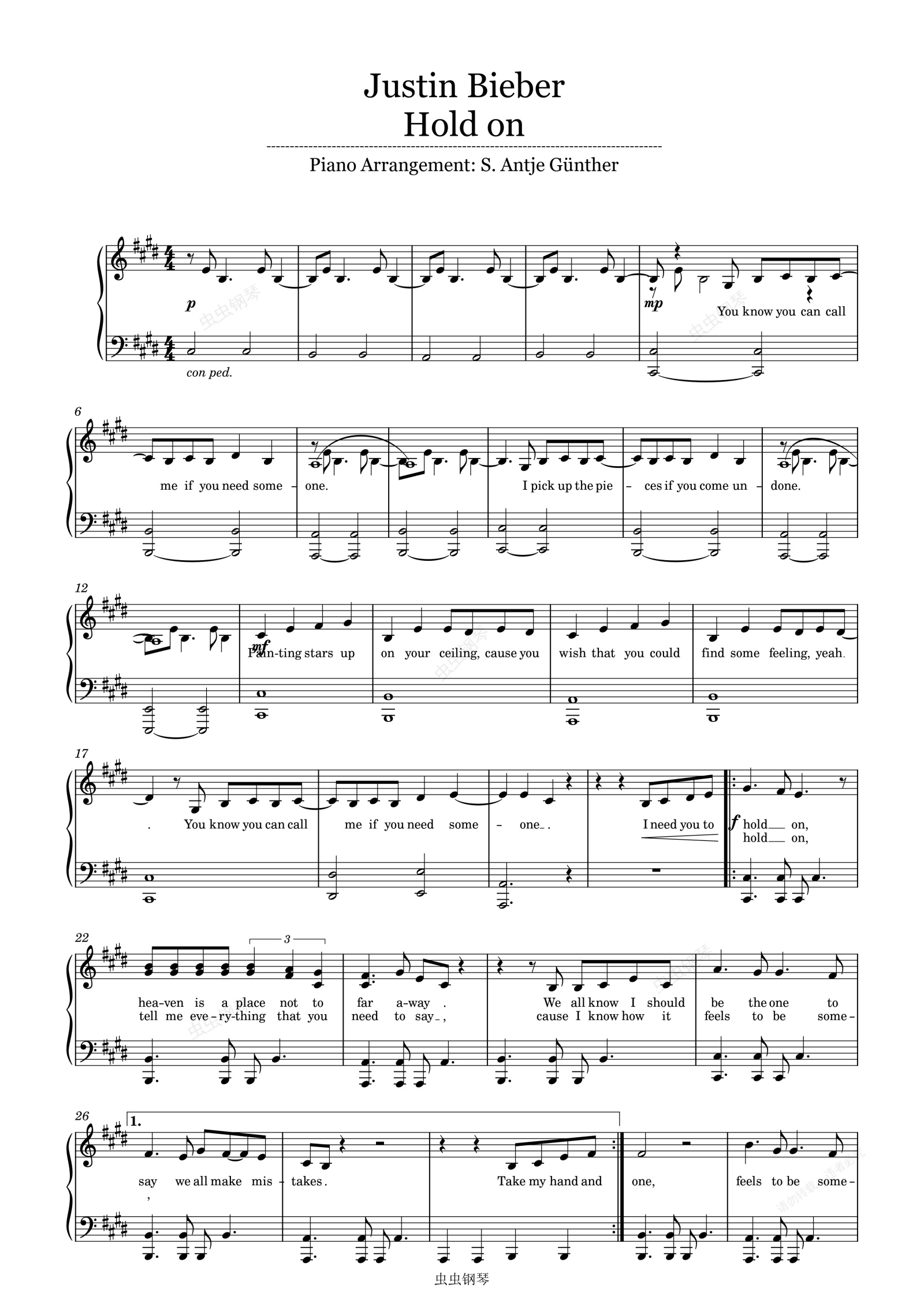 钢琴谱:Hold On-Justin Bieber