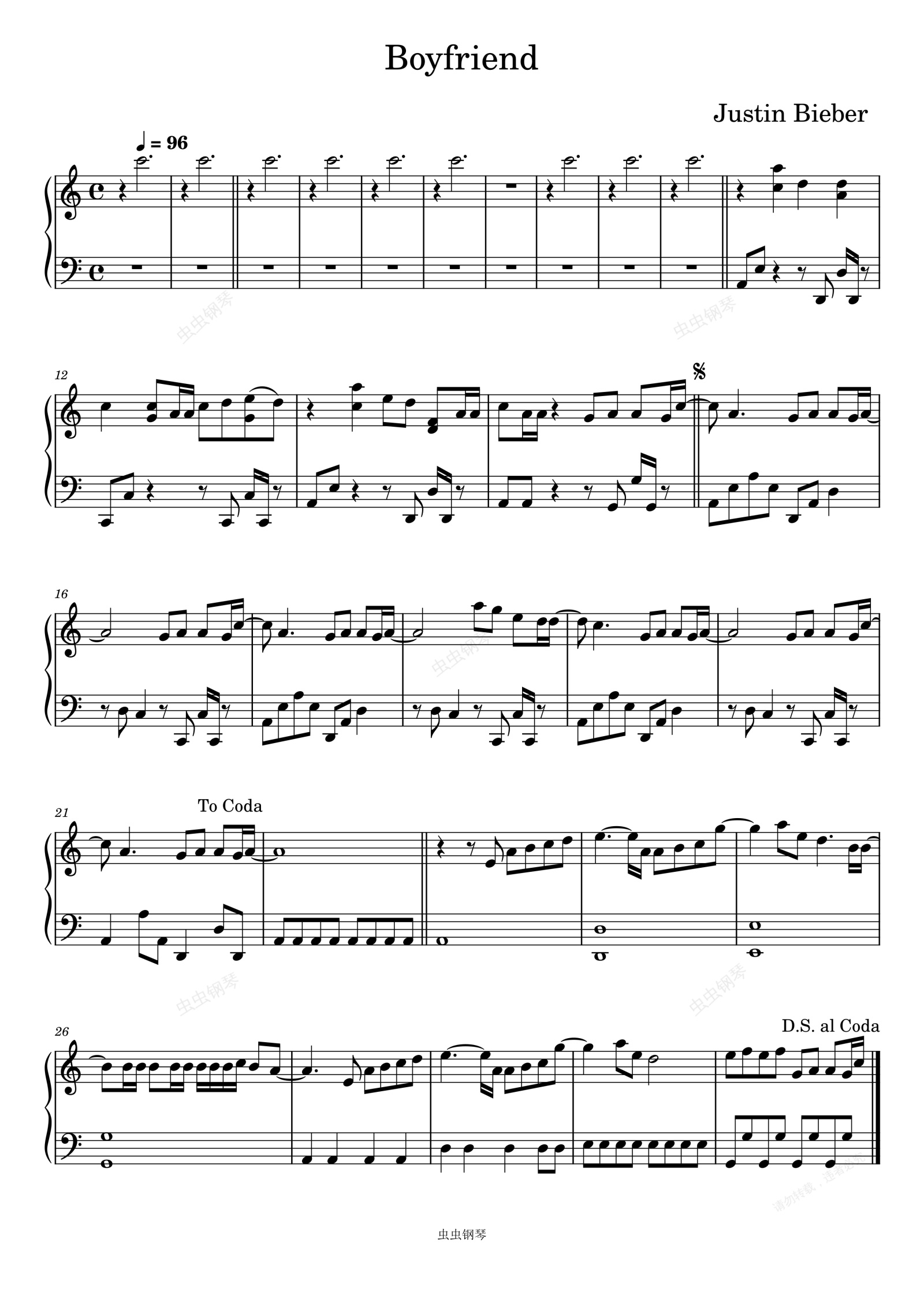 钢琴谱:Boyfriend-Justin Bieber