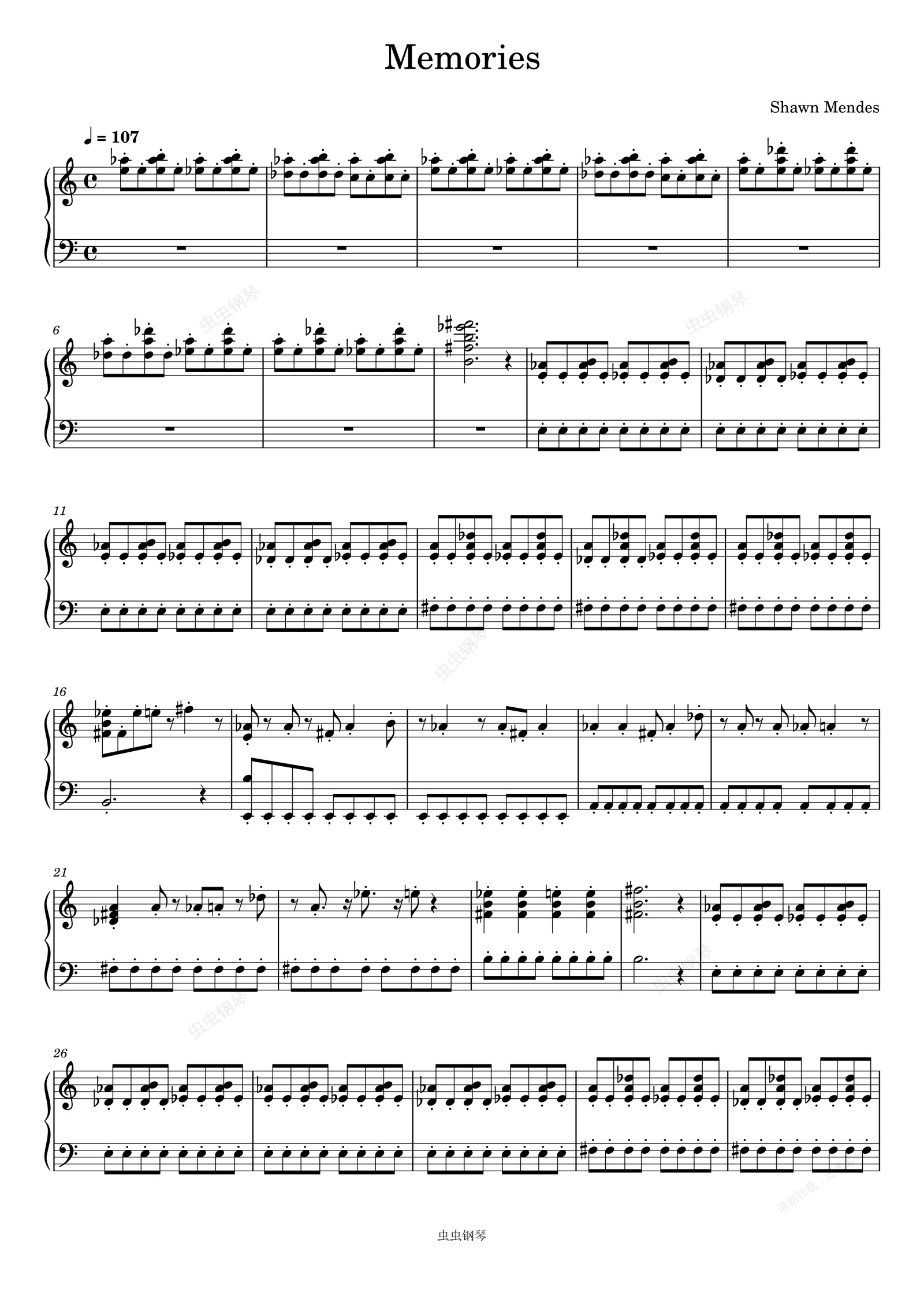 钢琴谱:Memories-Shawn Mendes