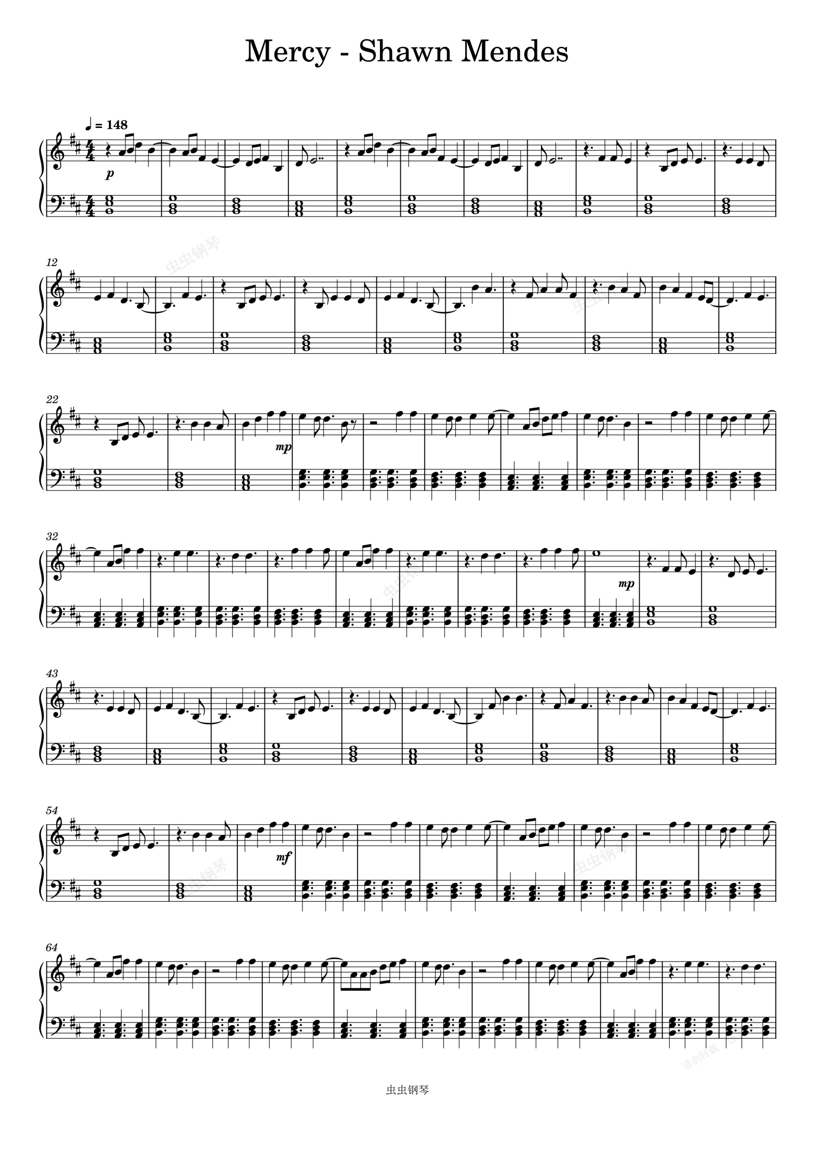 钢琴谱:Mercy - Shawn Mendes