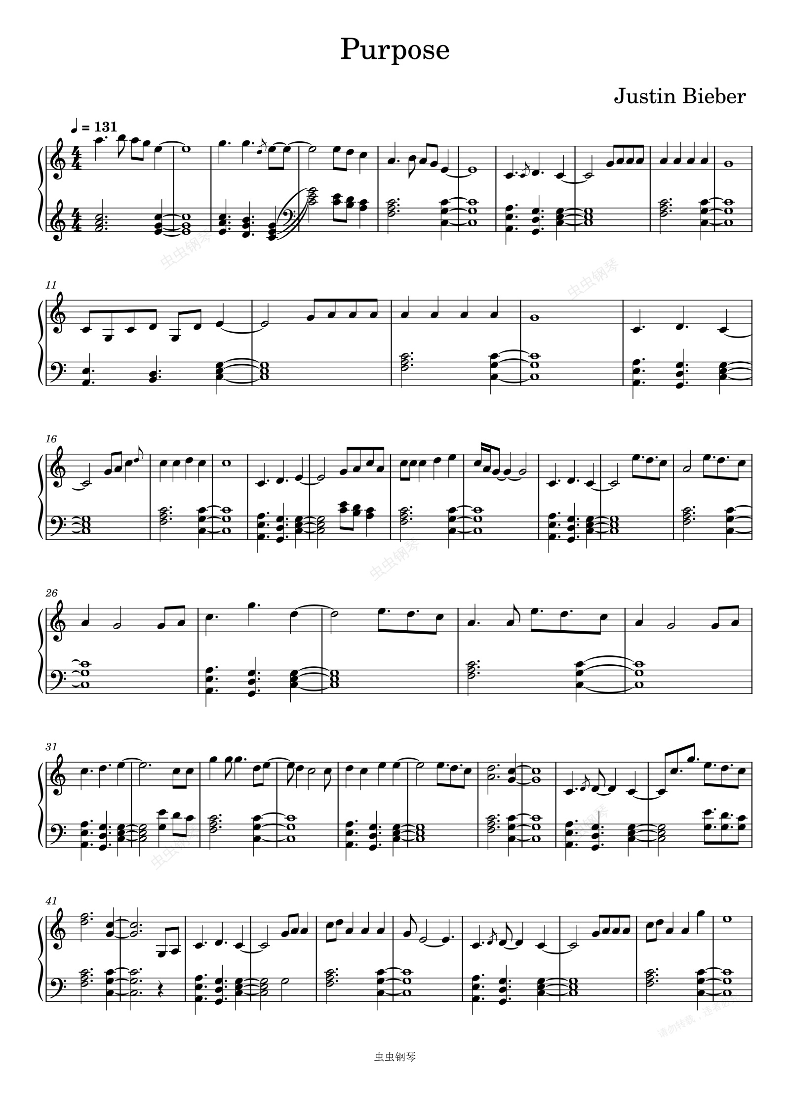 钢琴谱:Purpose-Justin Bieber
