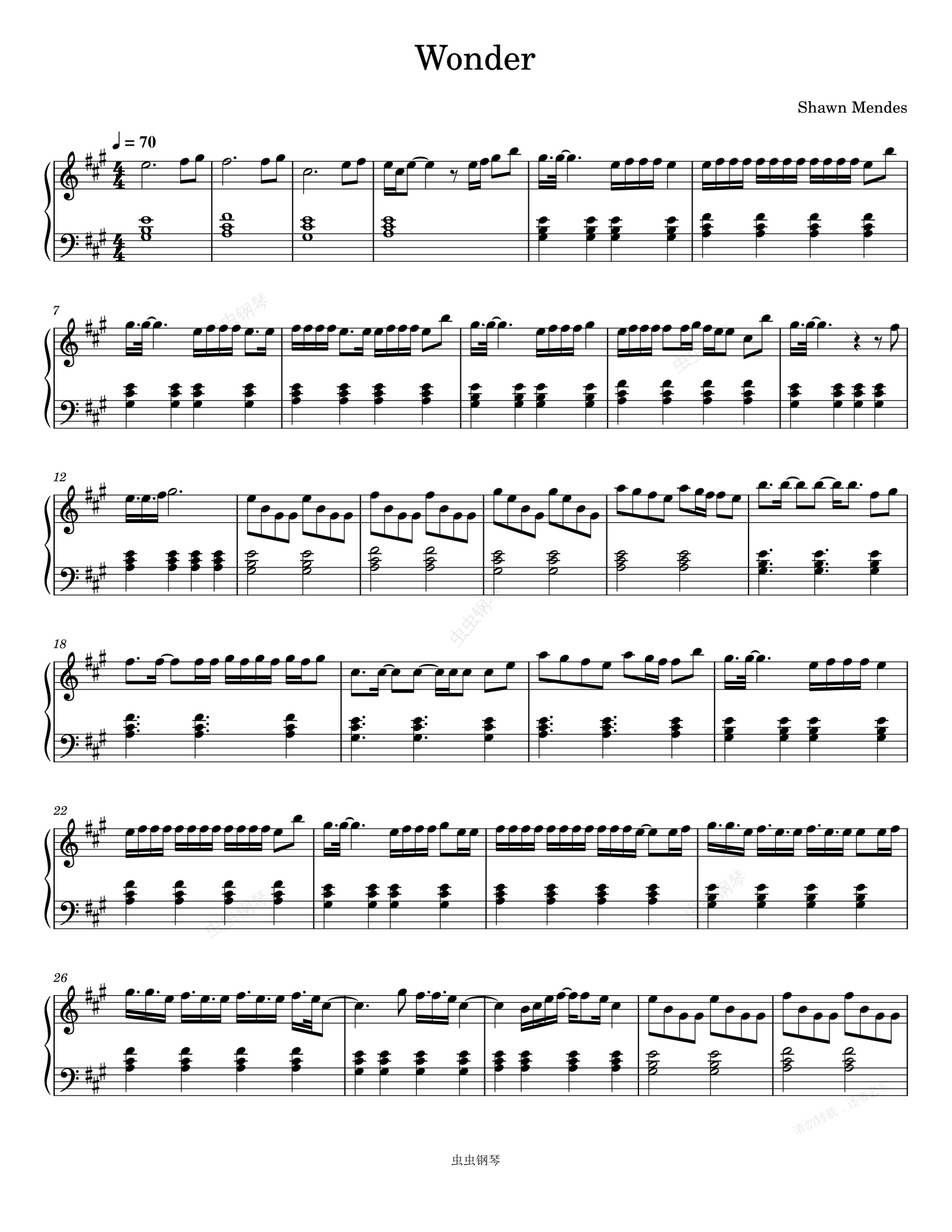 钢琴谱:Wonder (Shawn Mendes)