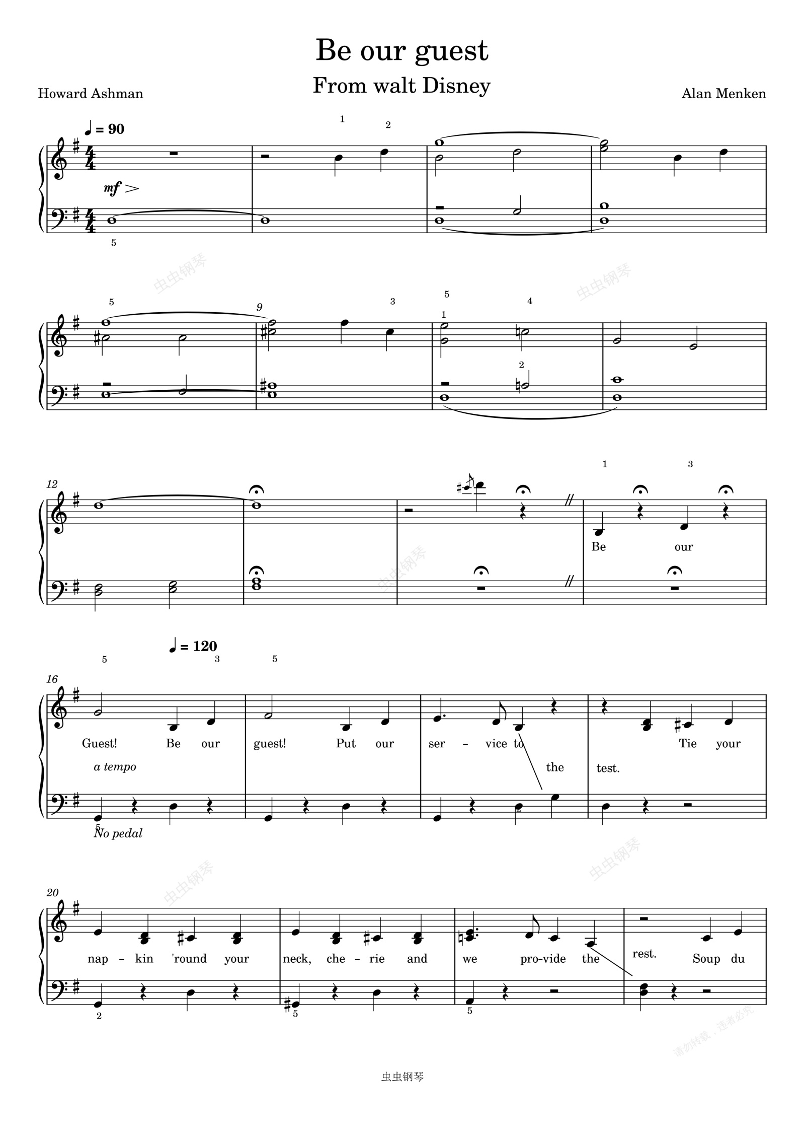 钢琴谱:美女与野兽 动画电影 Be our guest