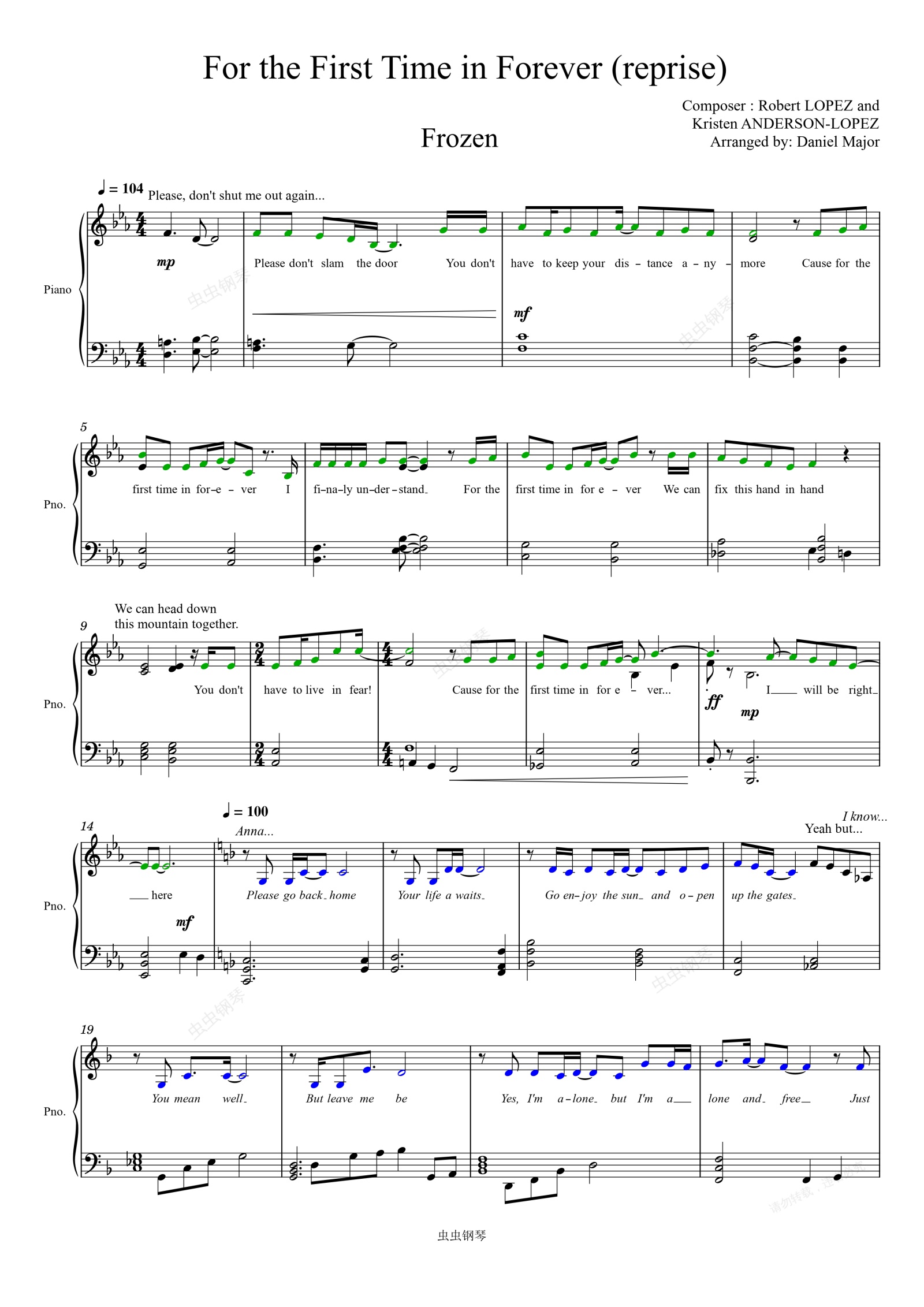 钢琴谱:For the First Time in Forever (reprise)-Frozen-Kristen Bell