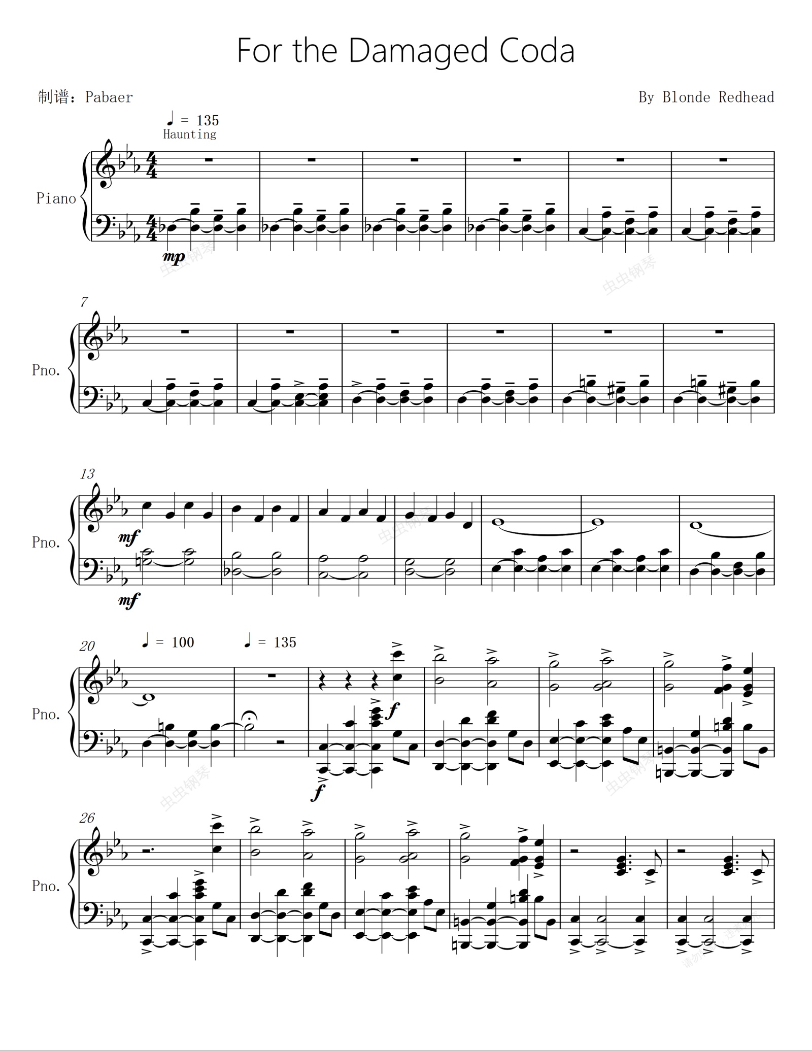 钢琴谱:For the Damaged Coda(梗曲独奏版)