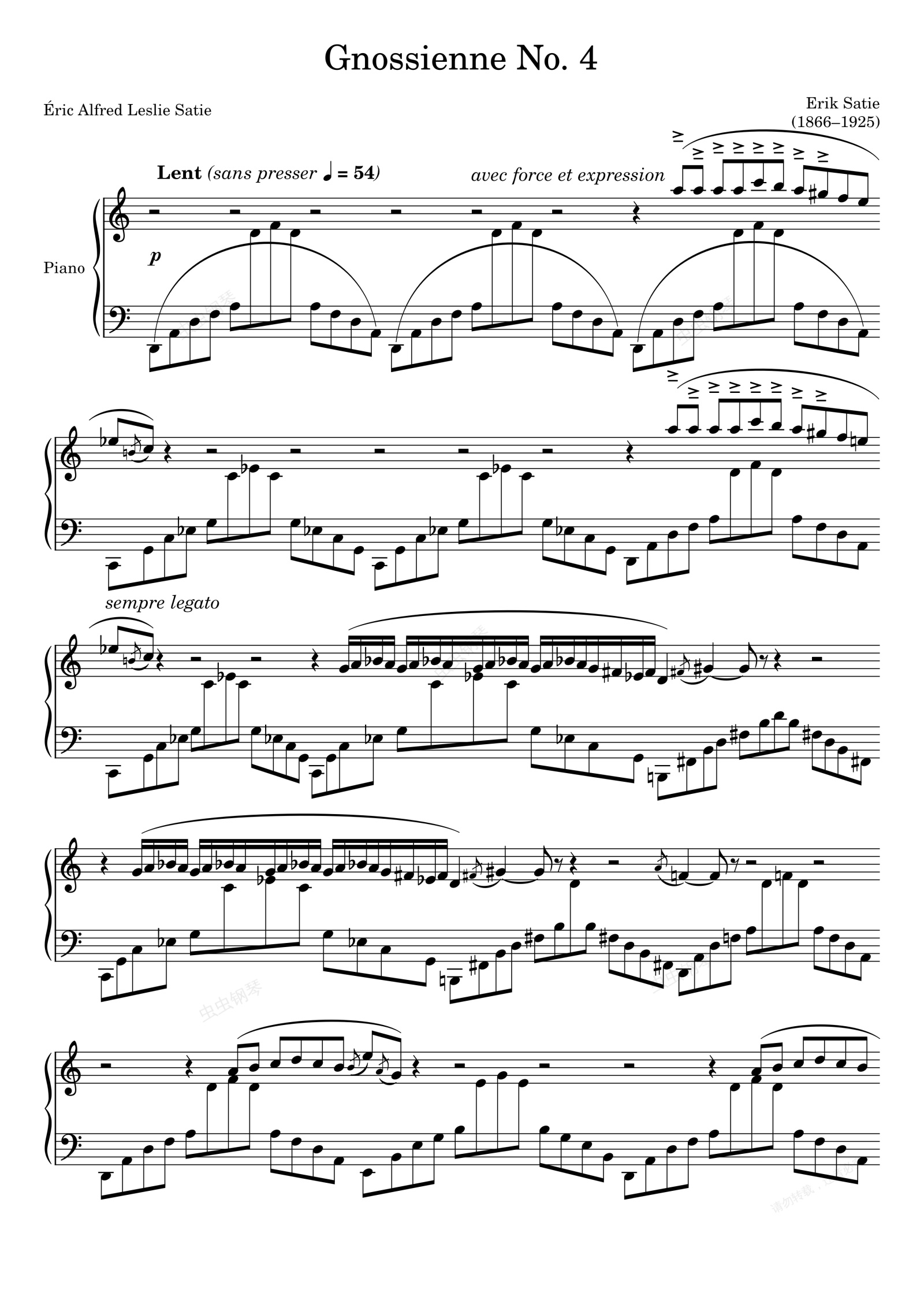 钢琴谱:玄秘曲第四号 Gnossienne No. 4